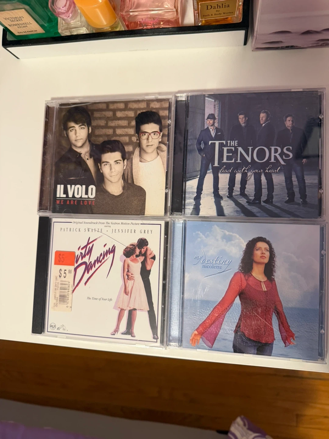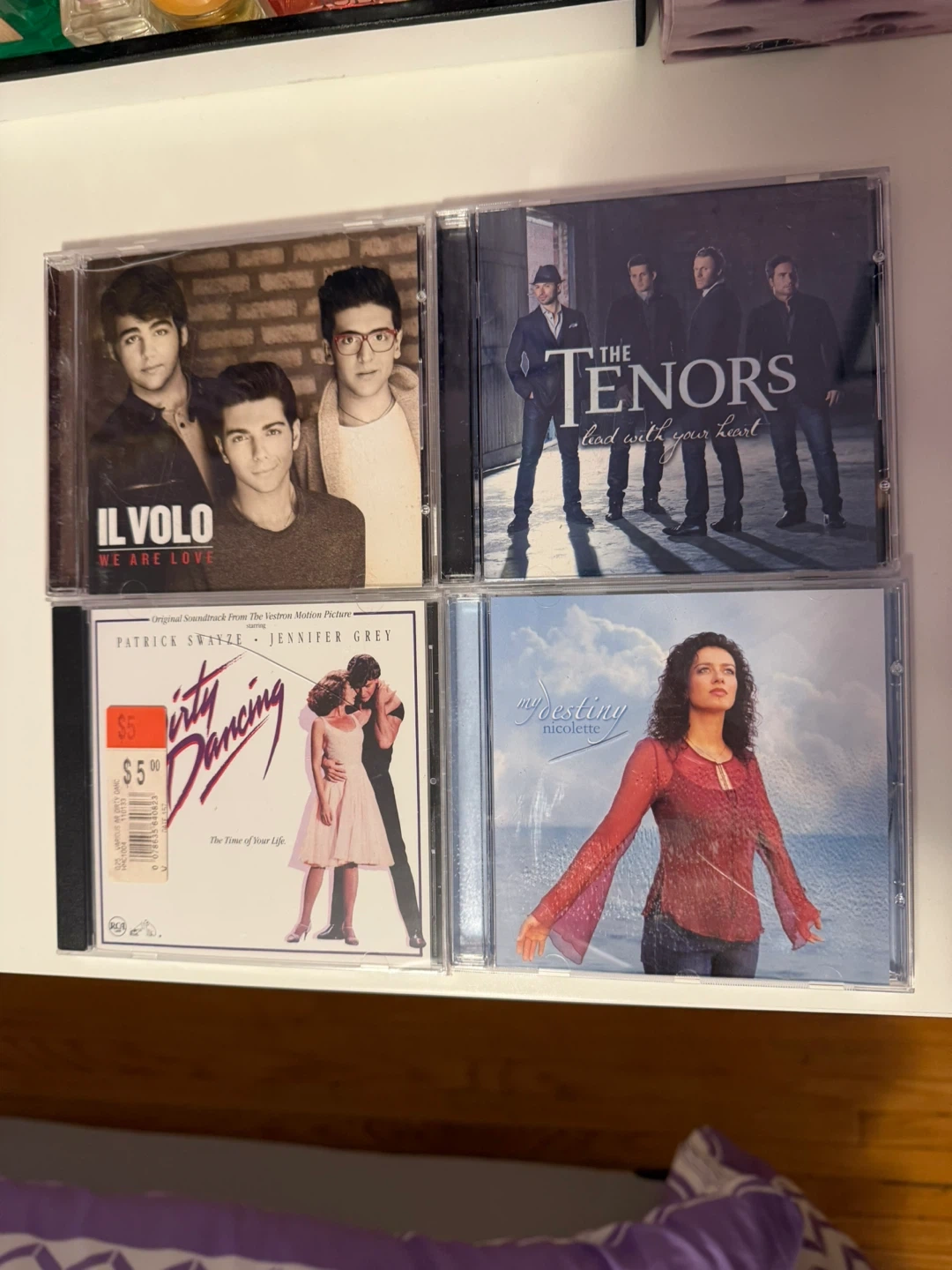 Four CDs for sale: Il Volo's 'We Are Love', The Tenors' 'Lead With Your Heart', the 'Dirty Dancing' soundtrack, and Nicolette's 'My Destiny'. All discs are in their original jewel cases.