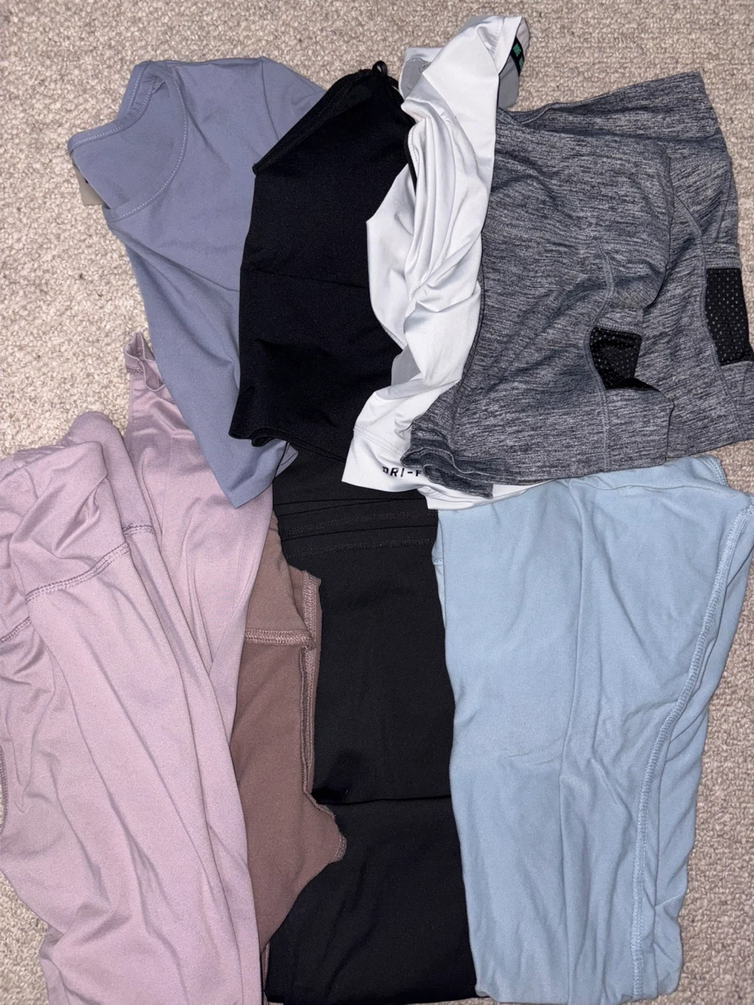 Selling a bundle of athletic wear! Includes shorts, tops, and leggings in various colours and styles. Perfect for workouts or everyday wear!