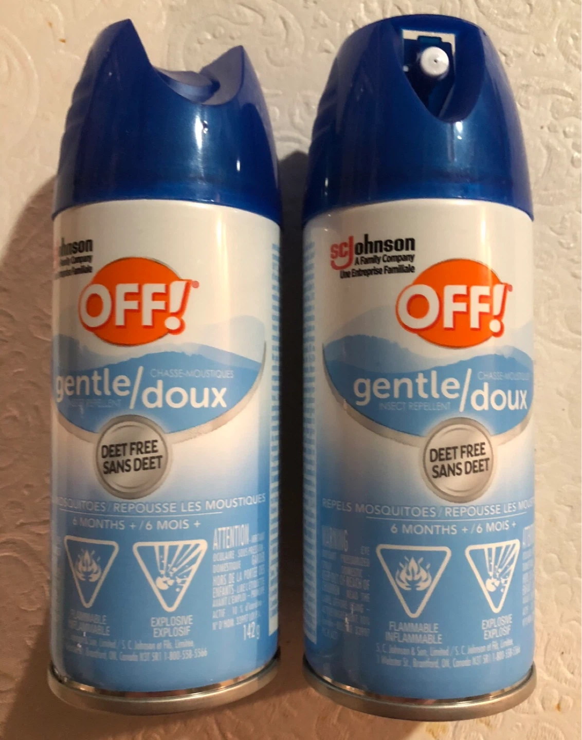 OFF! Gentle insect repellent spray. It's DEET-free and formulated for use on babies 6 months and older. This spray repels mosquitoes.