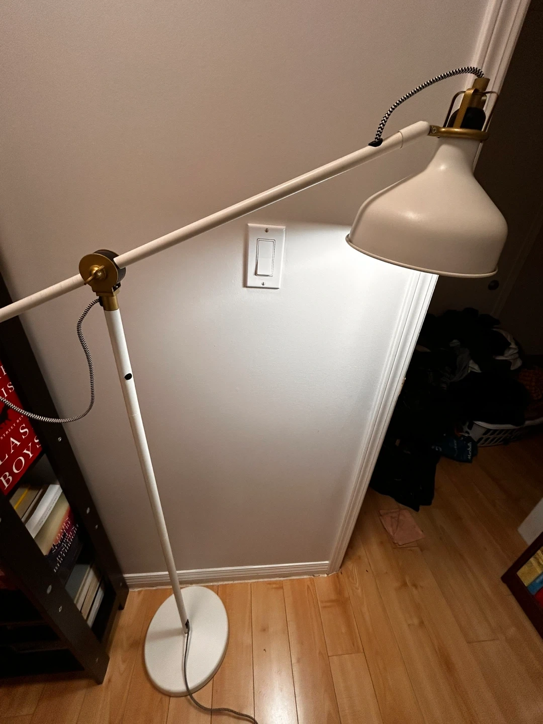 Selling an IKEA RANARP floor lamp in white. It's in great condition and provides a nice, adjustable light source for any room. Perfect for reading or general lighting!