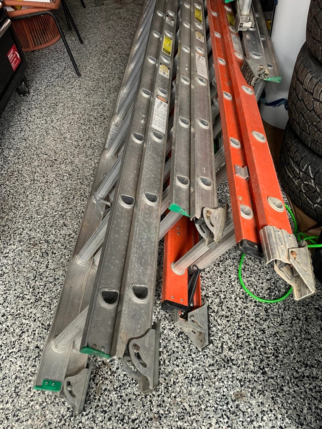 These Werner aluminum extension ladder. It's a sturdy ladder for various tasks. It's ideal for reaching high places. 5 ladders - prices below.