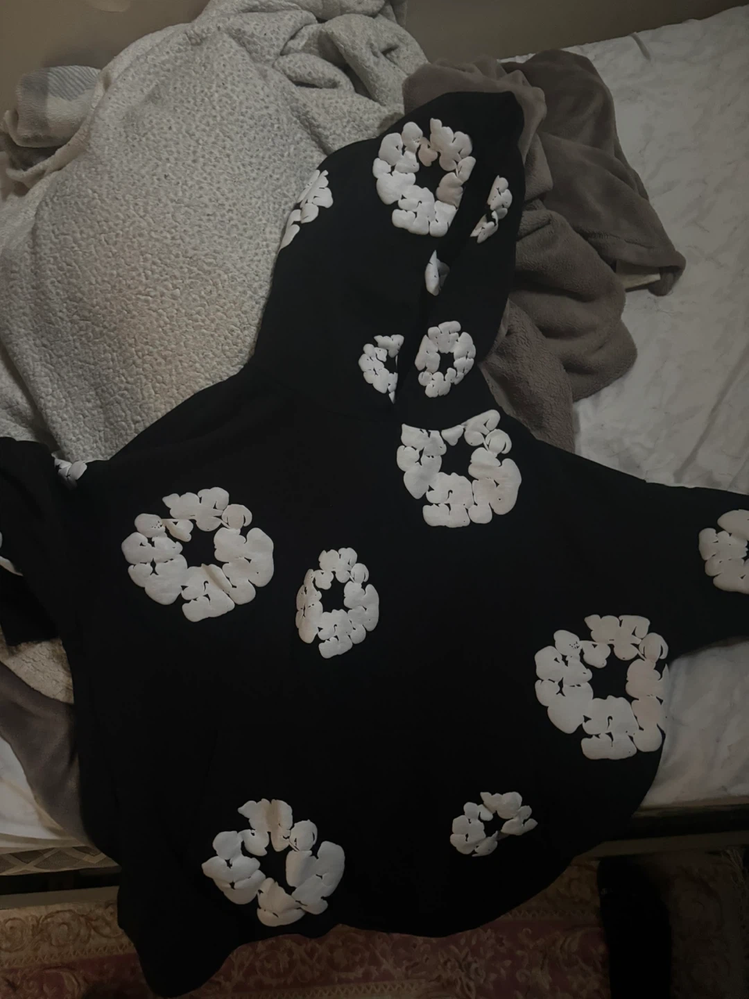 Black Hoodie with White Flower Print