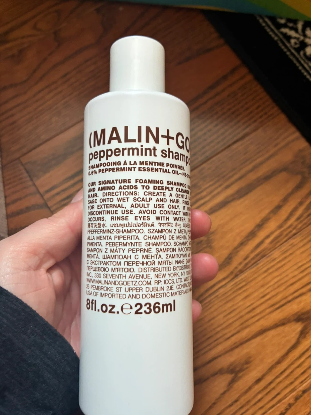Malin+Goetz signature foaming shampoo with peppermint and amino acids. Gently cleanses scalp and hair. 8 fl oz bottle.