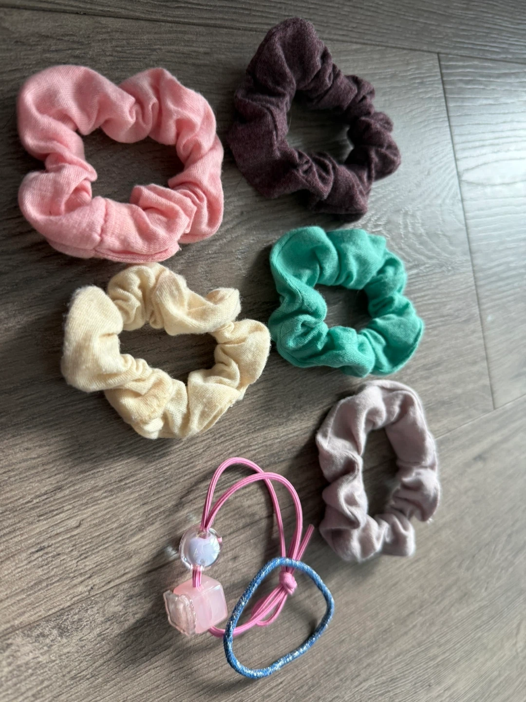 A collection of scrunchies and hair ties for your hair.