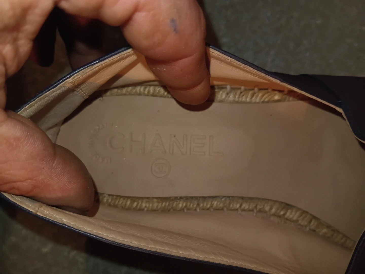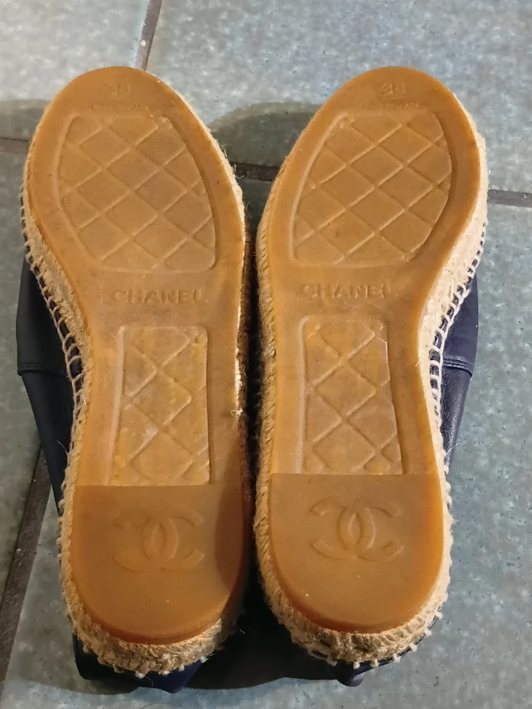 CHANEL Navy Leather Cap Toe Espadrille Flats