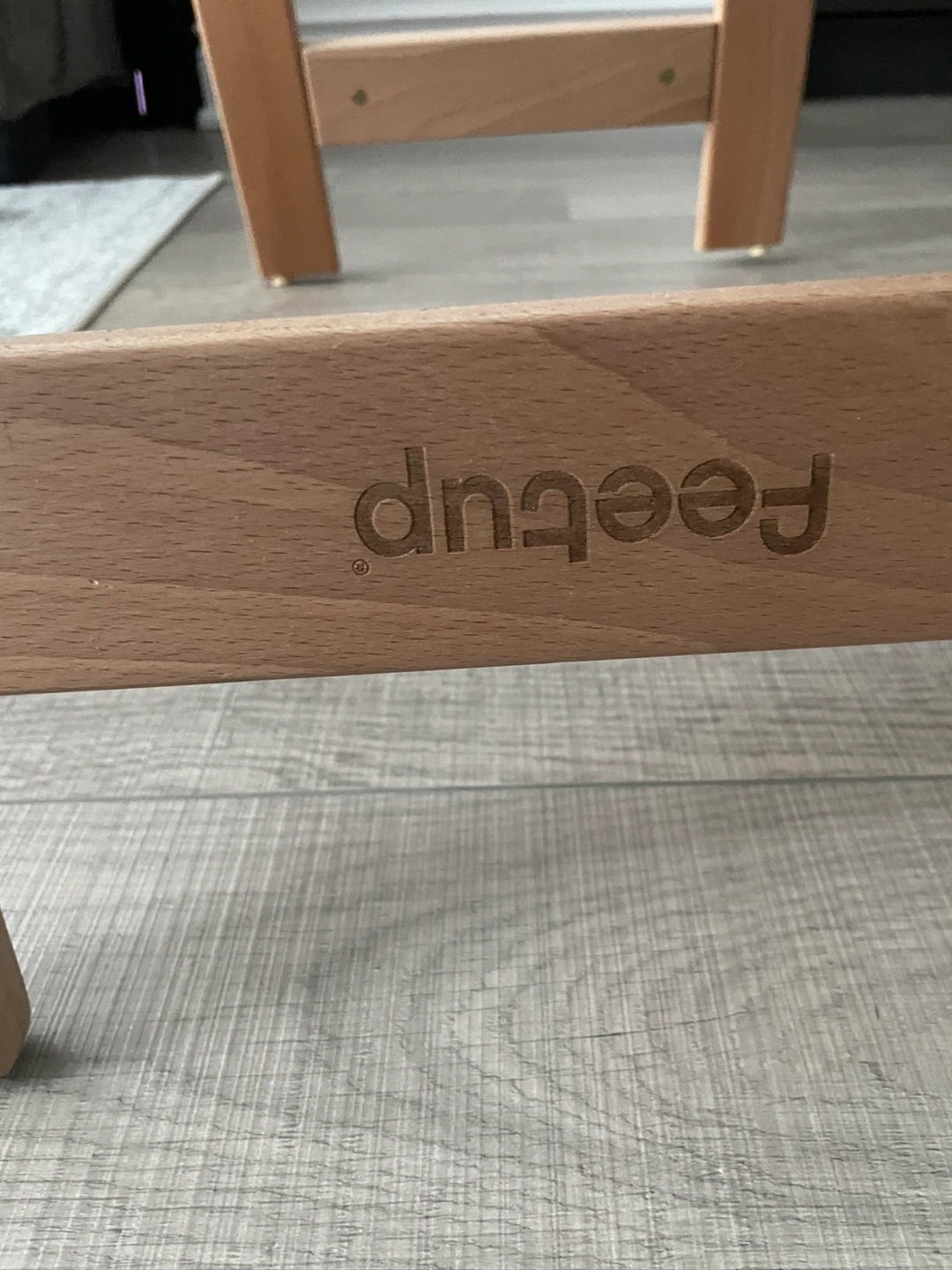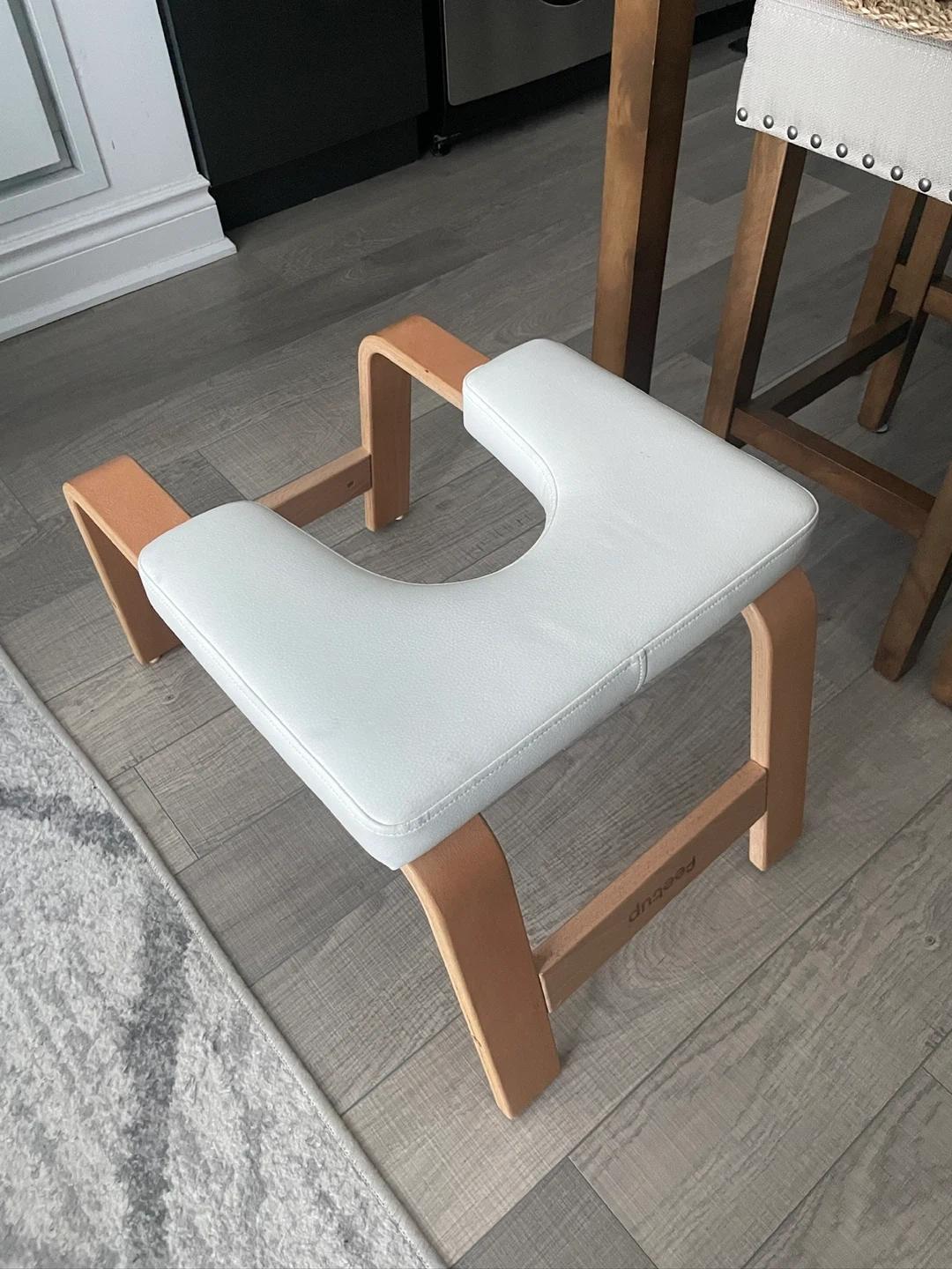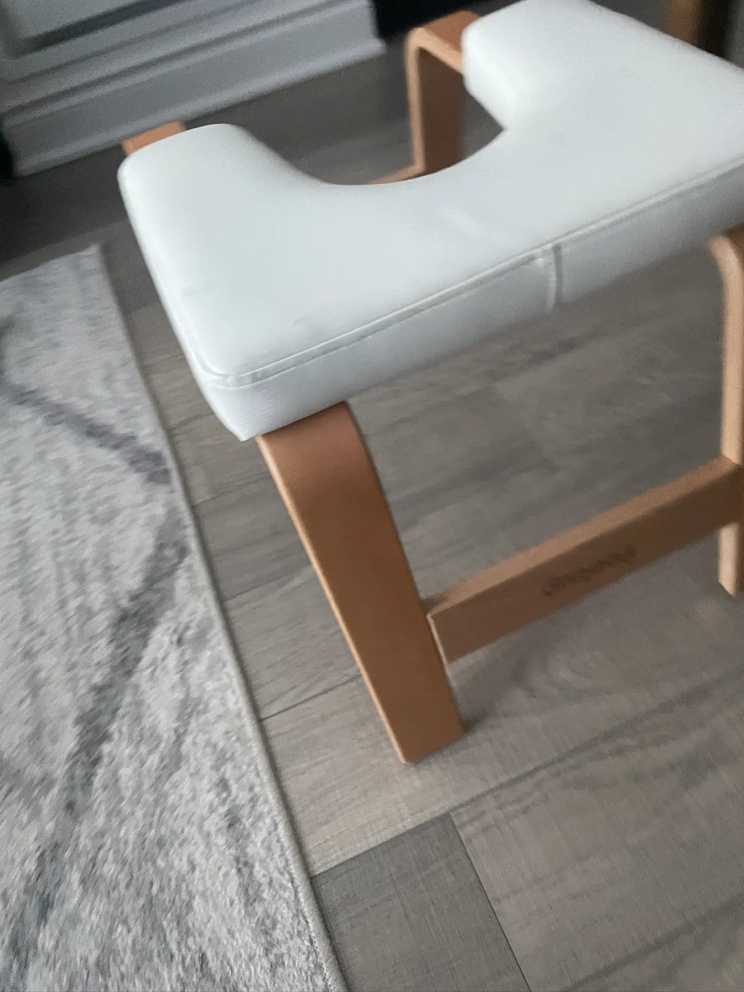 This is the original FeetUp trainer, designed for safe and stable headstands. It's crafted with a sturdy wooden frame and a comfortable white padded cushion. This trainer helps you achieve a proper headstand alignment and build confidence.
