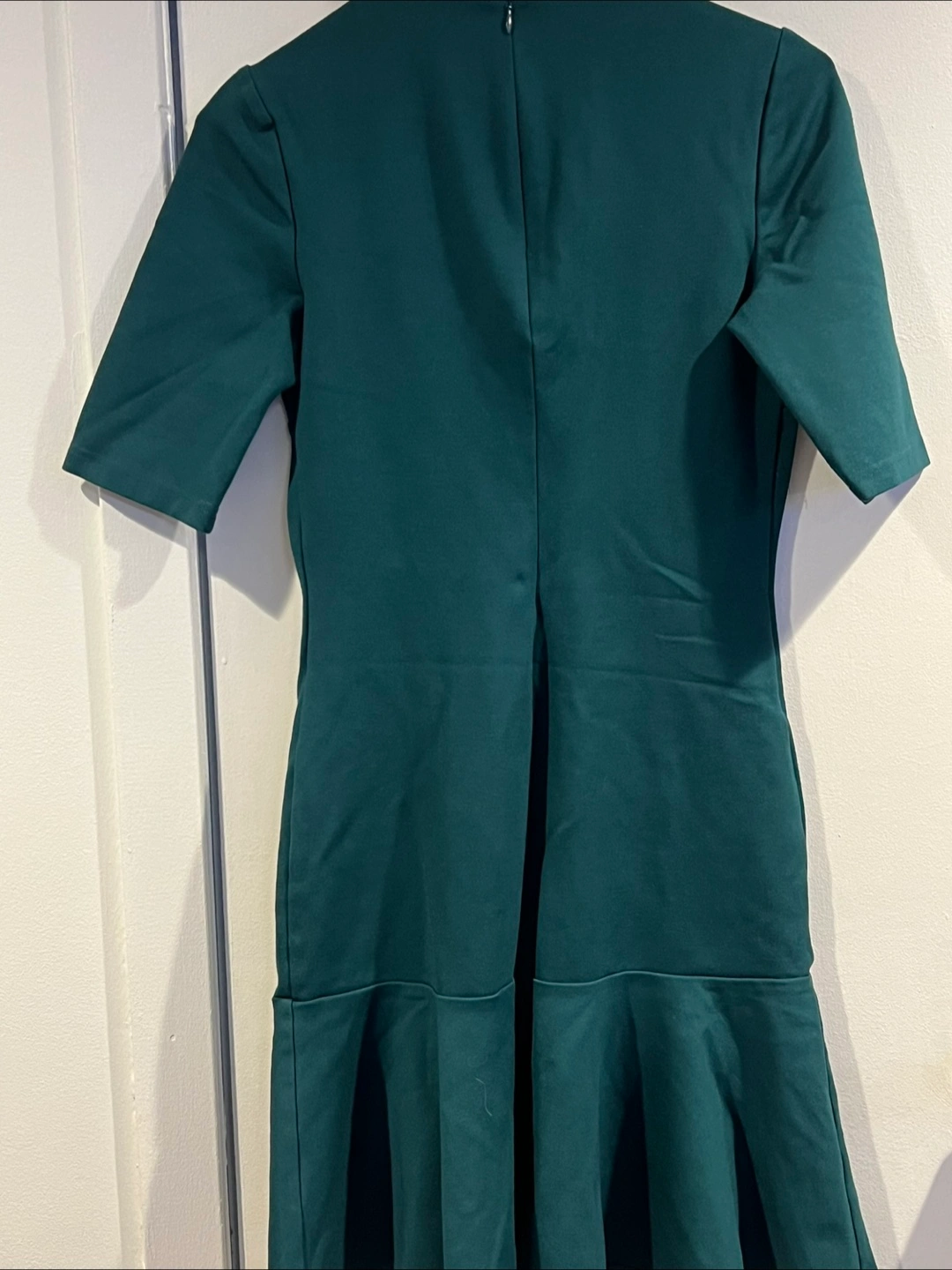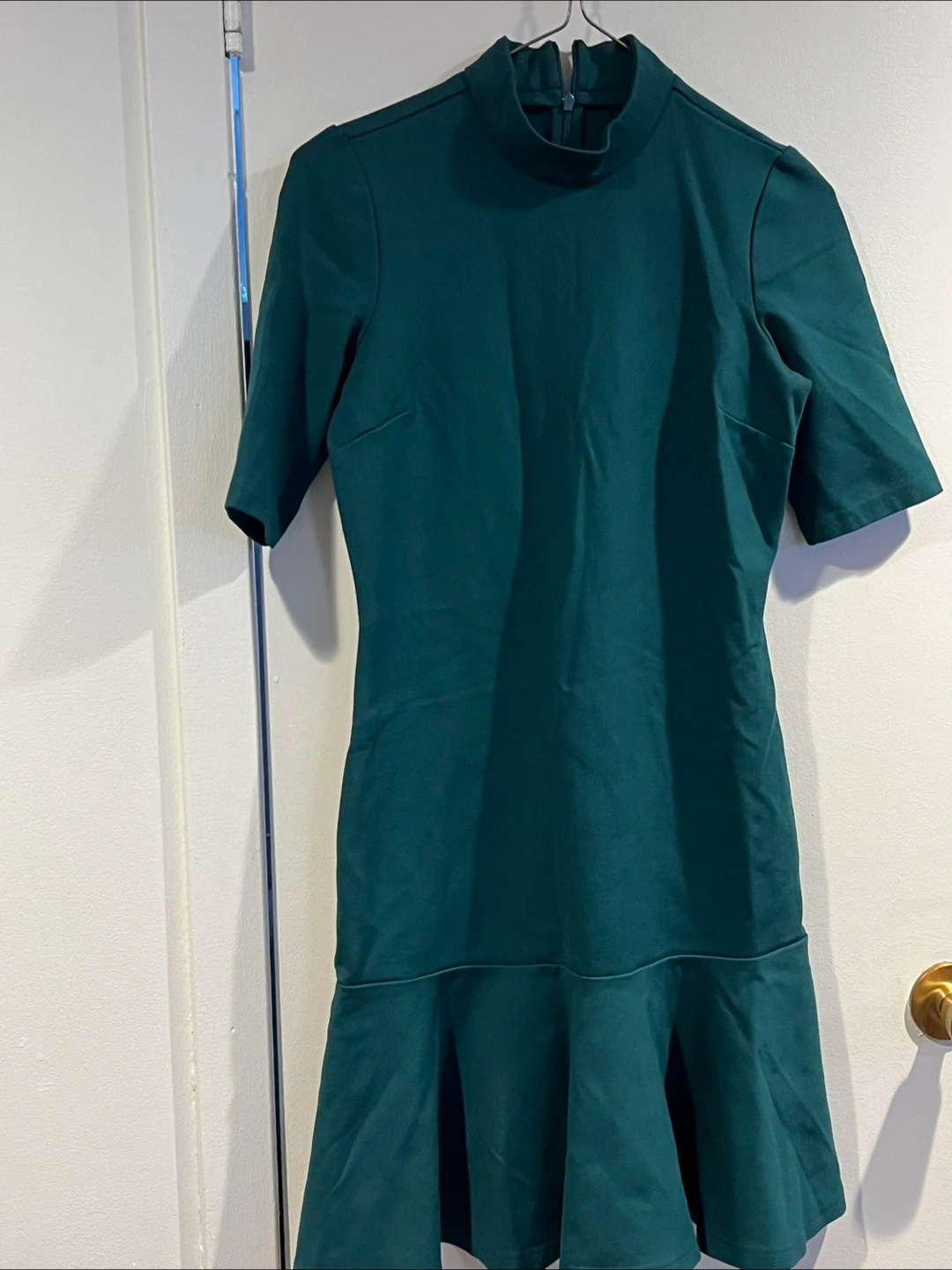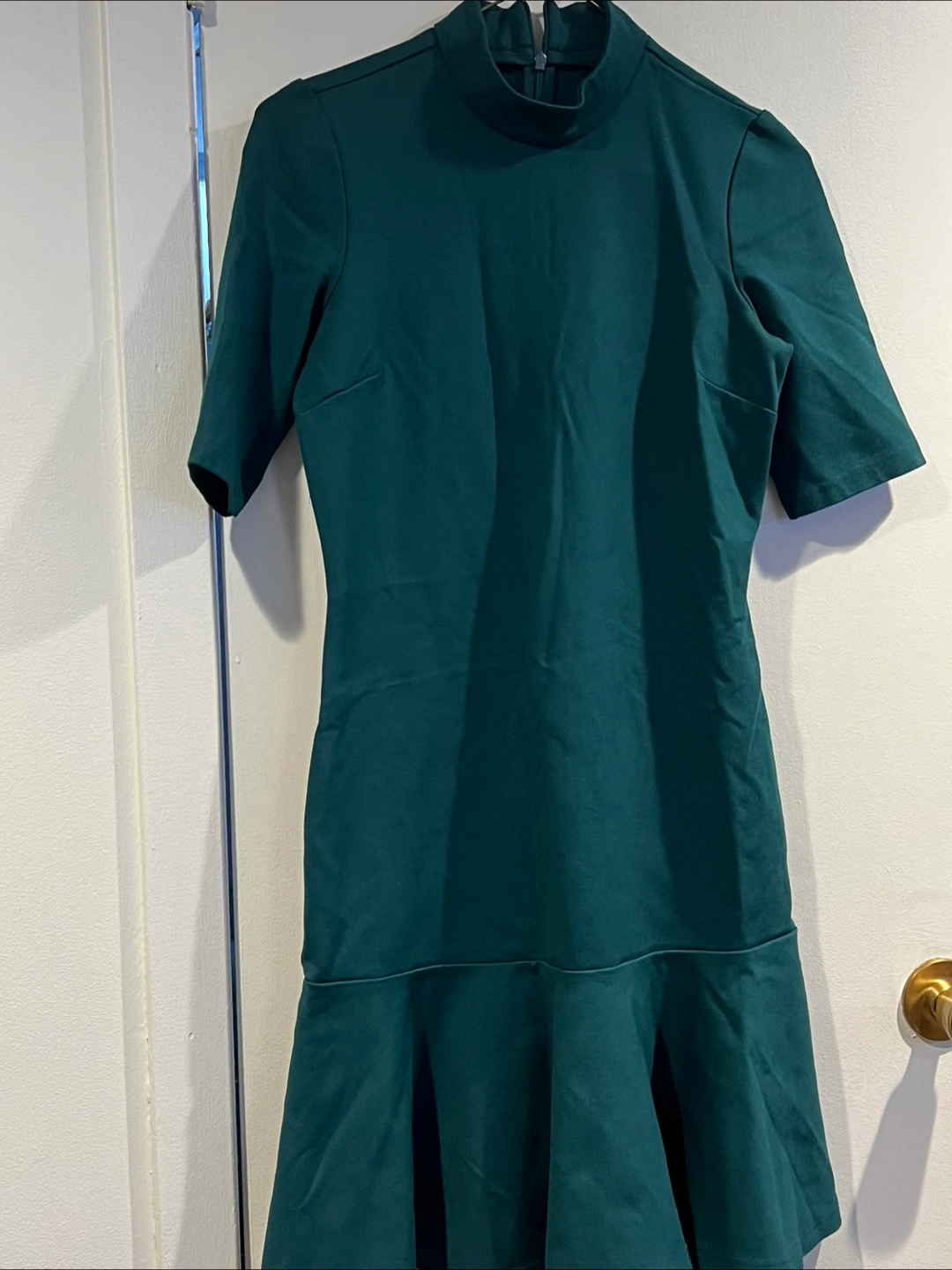Dark teal fit and flare dress. Mock neck, short sleeves, and a back zipper. Excellent condition. Asking $10 each