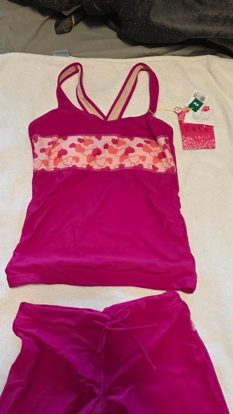 C&C California Pink Heart Print Tankini Swim Set