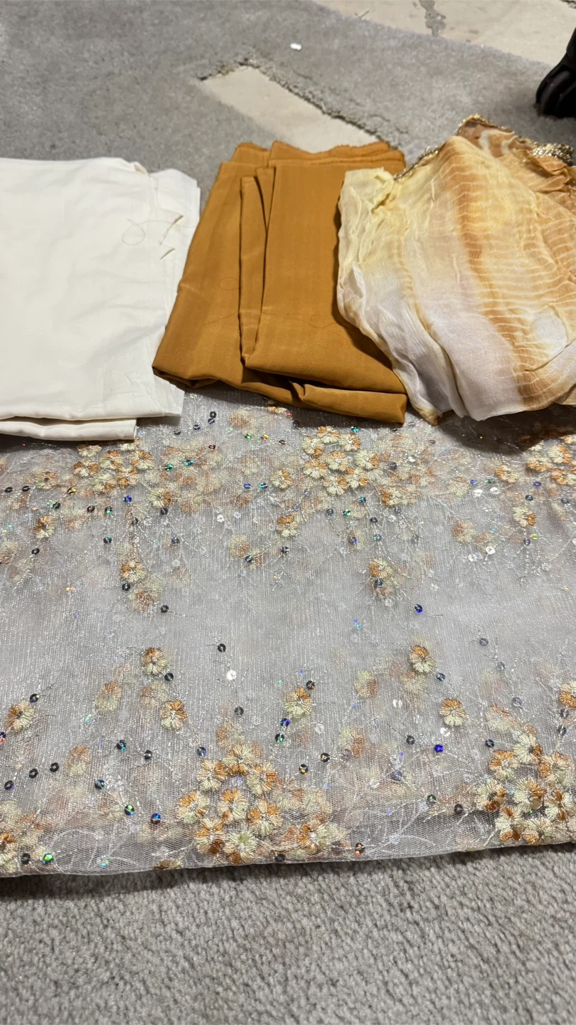 Selling a salwar kameez fabric set. Includes the top, bottom and dupatta. Perfect for stitching your own custom outfit! Price $80