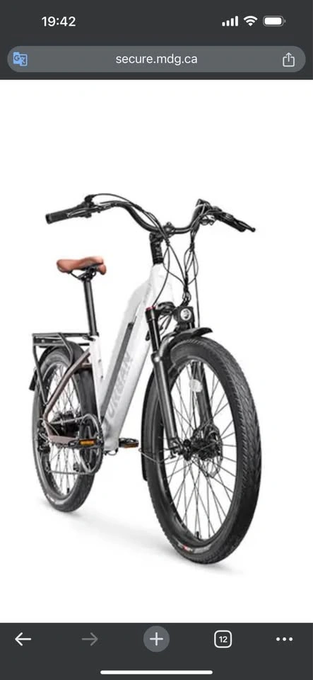 10Used about a dozen times. Prefer using a e-scooter. Components Brake: Logan 180mm Mechanical Disc Brake Shift: Shimano 7-Speed ASLRS35R7ET Cassette: 7-Speed Chain: KMC Z7GY Chain Pedal: Wellgo 249DU/9/16/BK/DU Crank: Prowheel 52T*170mm Aluminum BK Derailleur: Shimano 7-Speed ARDTY200GSLD Fork: Hydraulic Lockout Suspension Fork 27.5in*28.5*25.4*200L Frame: 6061 Aluminum 26*2.35 Handlebar: Aluminum Stem: Aluminum Adjustable Stem Wheel: 26in Double Wall Aluminum Rim Tire: 26in x 2.35in Saddle: CF Comfortable Saddle Electrical system Motor: 48V500W Hub Motor Controller: 48V/6FET, 48V/20A Sine Wave Controller Battery: 48V/13Ah, 624Wh Throttle: Knob throttle Sensor: Cadence sensor Charger: 48V/2Ah CE/UL certified Display: LCD_TFT color screen Front light: 48V/10W LED 700Lumen Tail light: WD220LED Performance Speed - Throttle only: 32kmh/20mph Speed - Pedal assist: 40-45kmh/28mph Average range - Throttle only: 40km/25 miles Average range with pedal assist: 60km/37 miles Bike weight: 26kg/57.3lbs, without battery, 30kg/66.1lbs, with battery Recommended weight capacity: Up to 100KG/220lbs If it’s listed it’s available Pick up in Point Grey only.