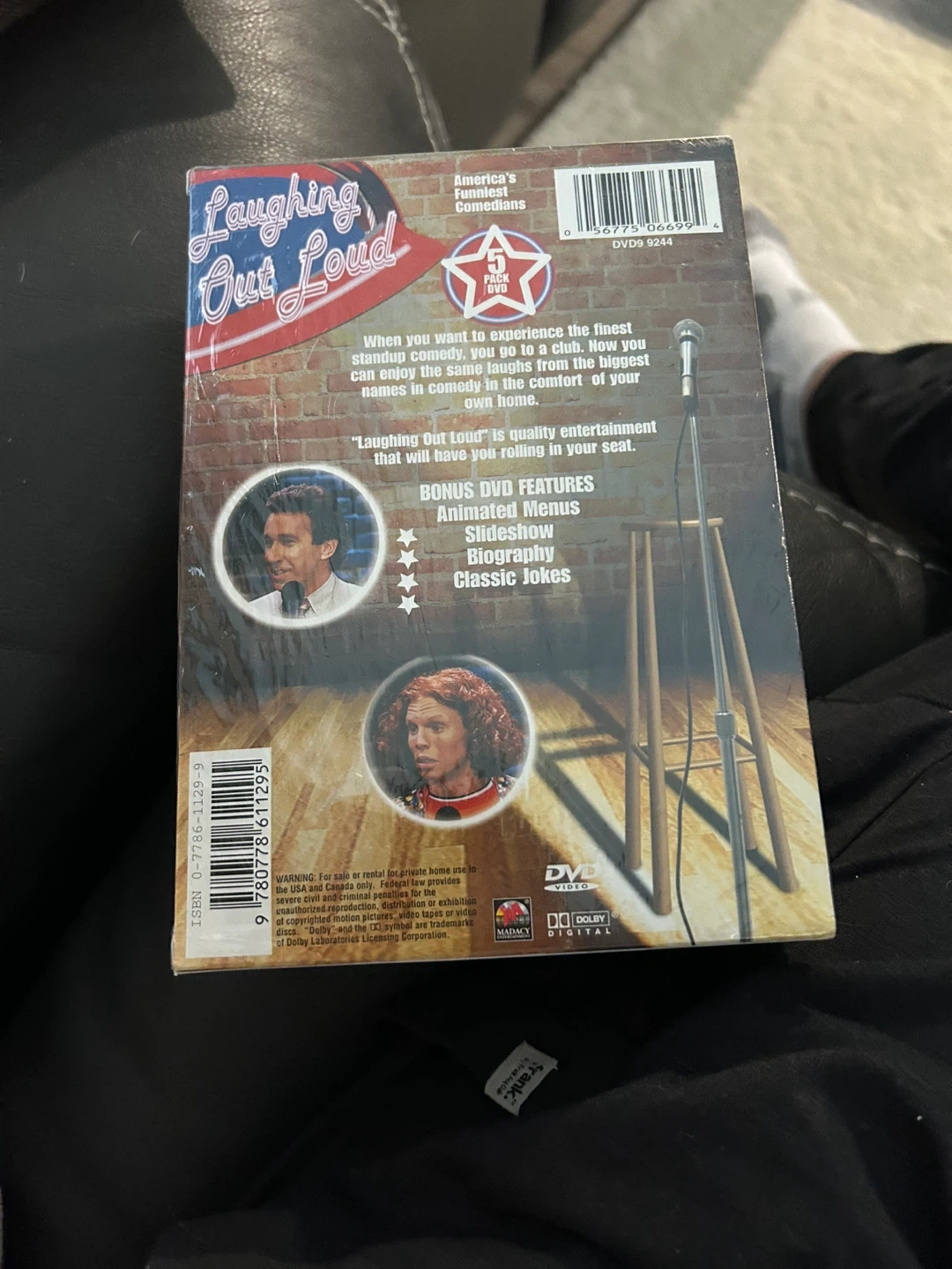 This 5-disc DVD set features "Laughing Out Loud: America's Funniest Comedians". It includes bonus features like animated menus, a slideshow, biography, and classic jokes. Enjoy stand-up comedy from your favourite comedians right at home!
