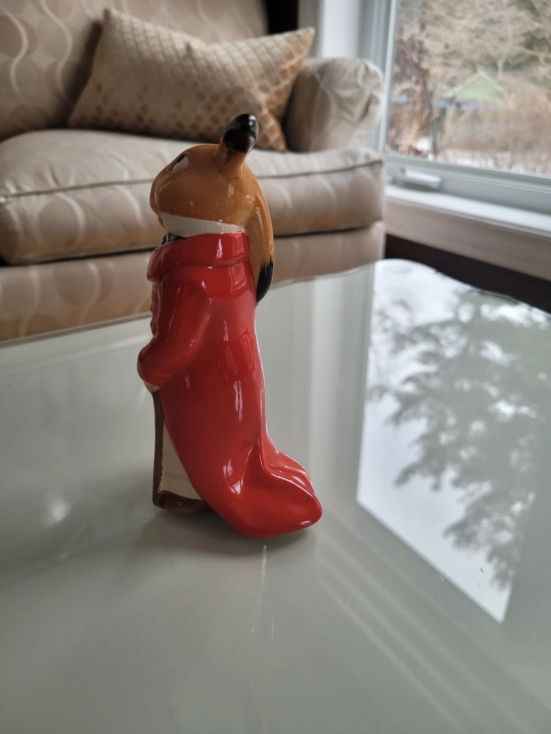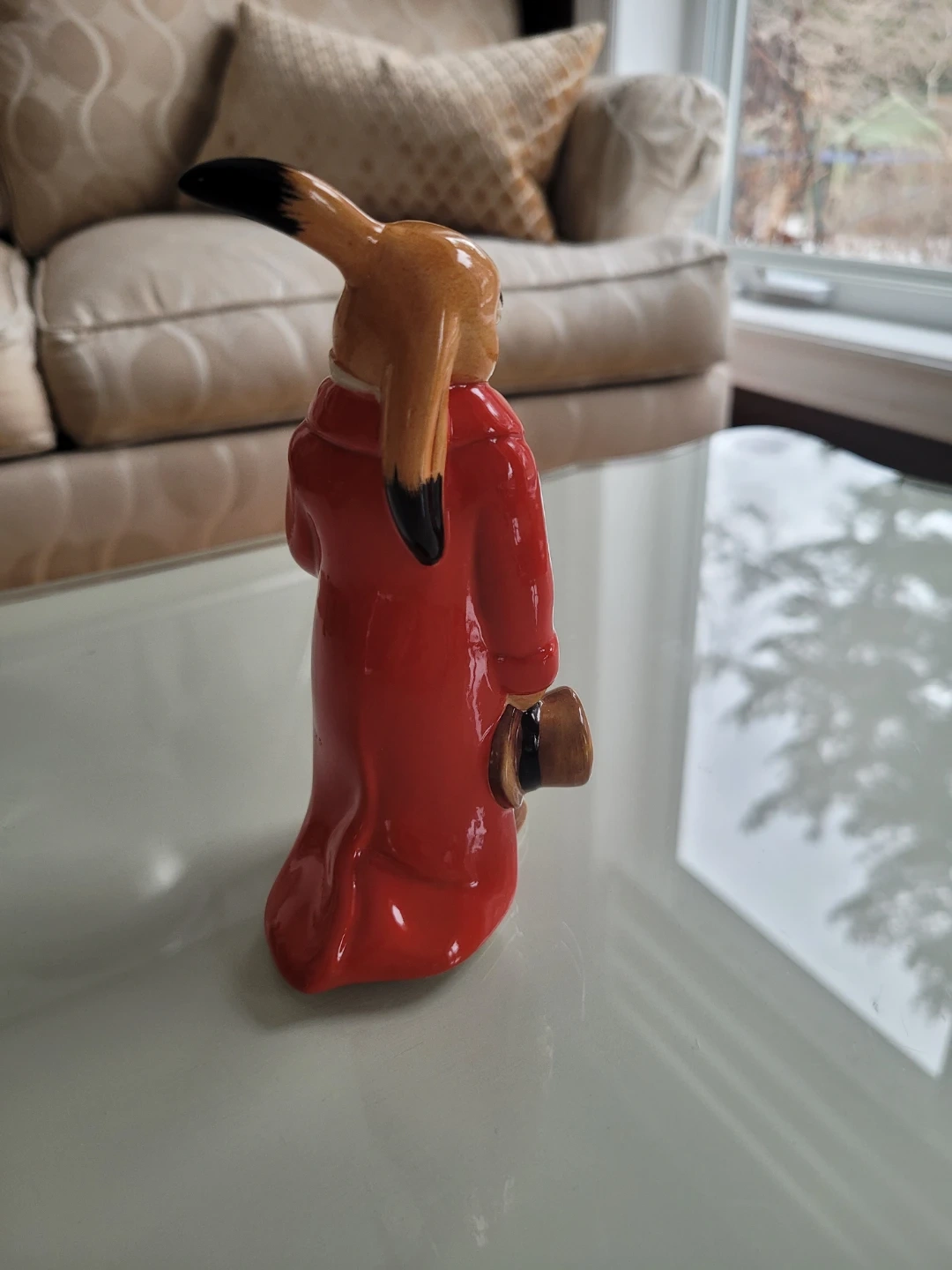 Royal Doulton Figurine 'The Huntsman' dressed in a red coat and cream pants, complete with a top hat and cane. It's a delightful decorative piece for any collector A classic addition to display on a shelf or table!