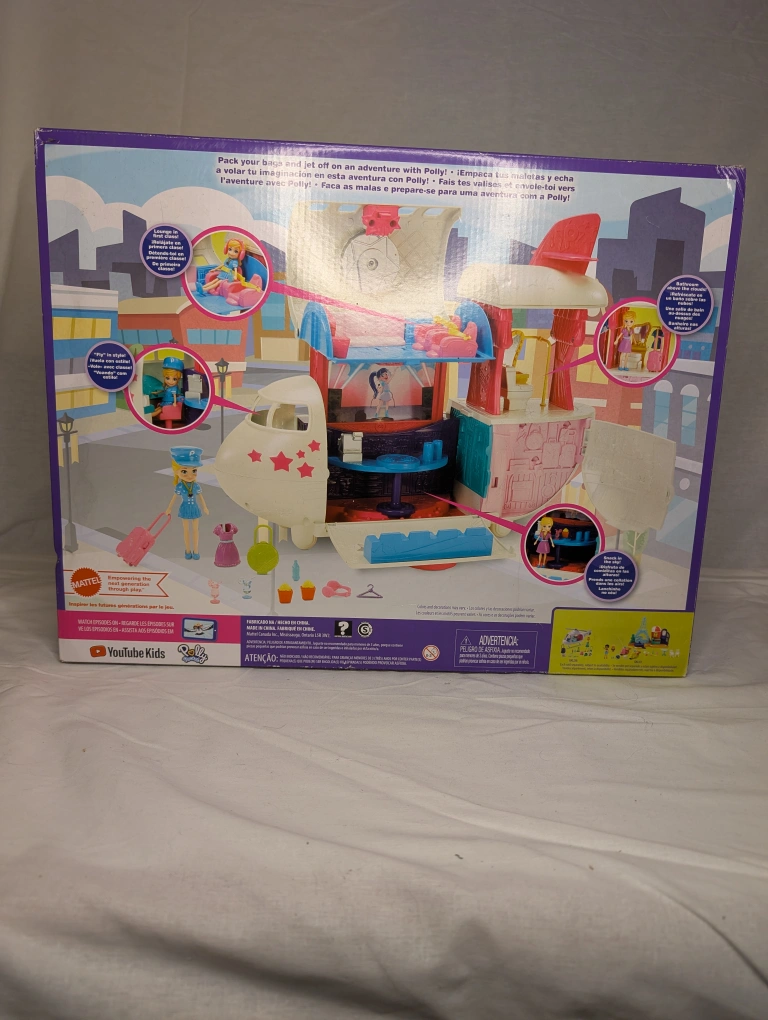 Selling a Polly Pocket Flying Fabulous Jet playset! It's a super fun airplane that opens up to reveal different play areas. Perfect for little ones who love imaginative adventures. Recommended for ages 4+