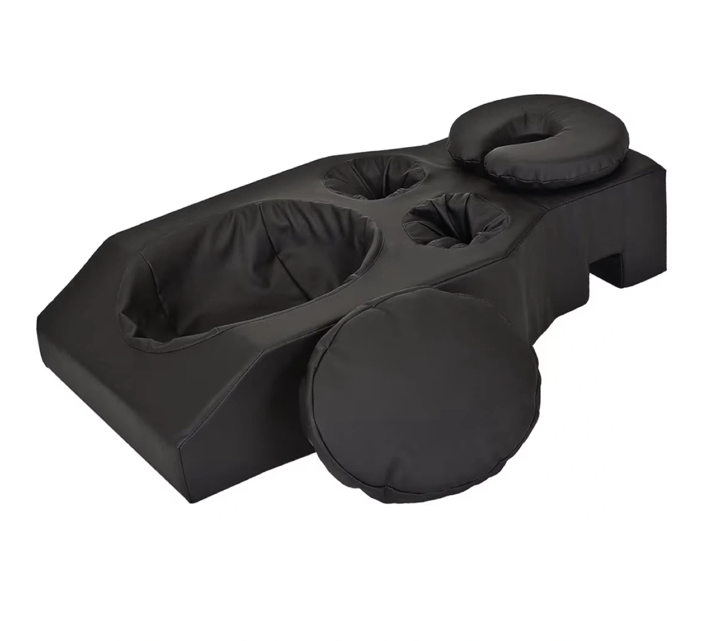 This set includes a big firm black pregnancy pillow for facedown massage or sleeping after a bbl - unfortunately, the pleather cover has started peeling but your own hygiene. I recommend that you put it inside a duvet envelops sheet anyway.