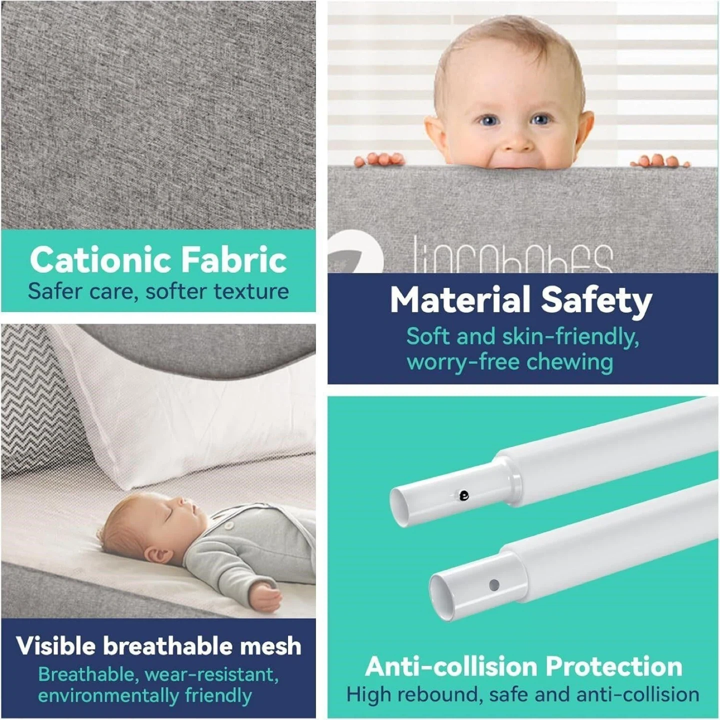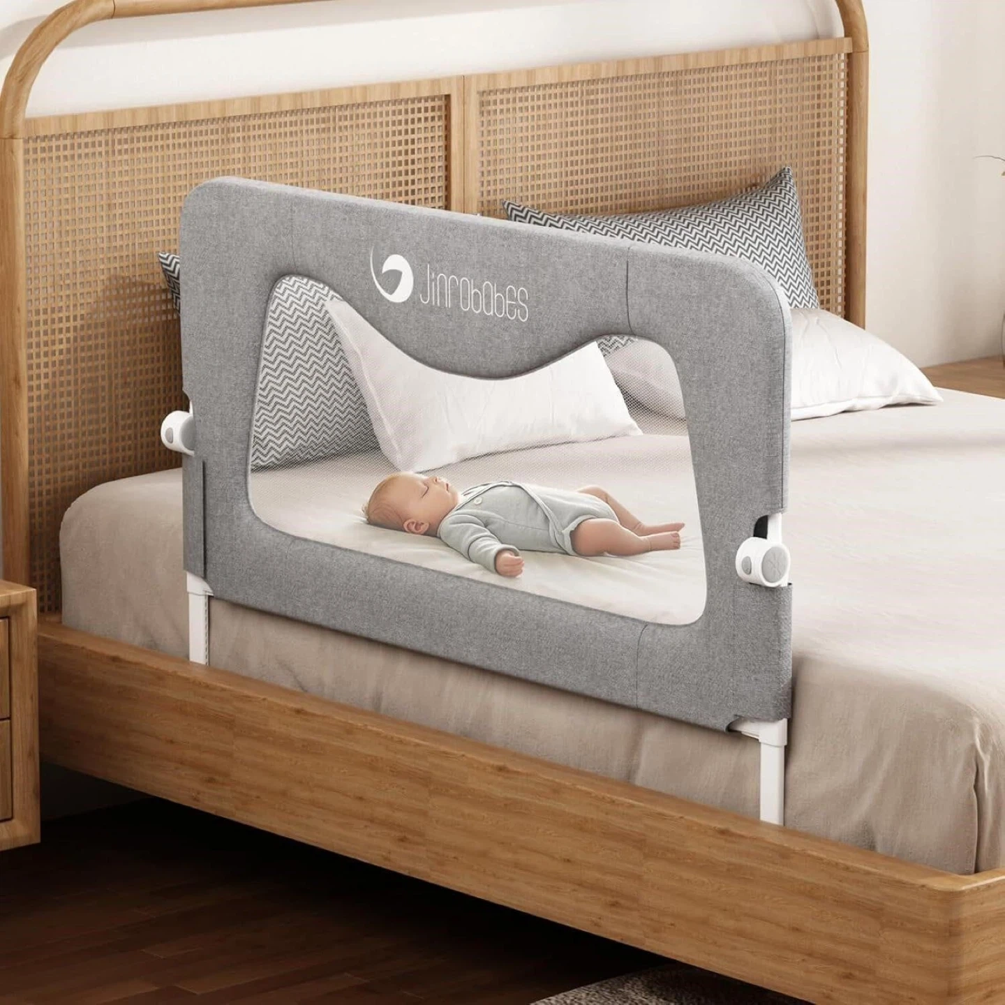 This Jinrobabes bed rail guard is made with cationic fabric for a safer, softer texture. It features a visible breathable mesh and anti-collision protection for peace of mind. The material is soft, skin-friendly, and worry-free for chewing. Protects your little one while they sleep!