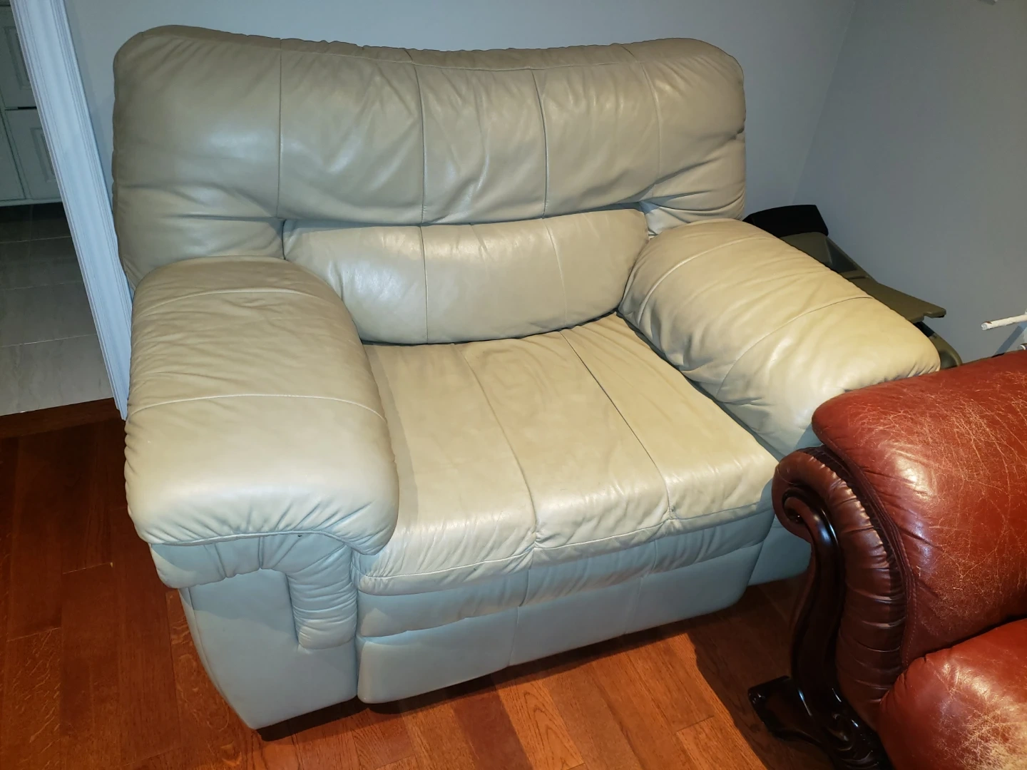 Buy & SellCream Leather Recliner ChairCream Leather Recliner Chair$140A comfortable cream leather recliner chair. It's made of real leather. This chair is perfect for relaxing after a long day.WHERE TO MEETCheck LocationView MapSELLERDannyYorkdale1038 reviews2 chats·2 favorites·25 viewsSEND CHAT TO SELLERHi Danny! I’m interested in your listing.Hi Danny! I’m interested in your listing.Get the Karrot app to chatSign In to chat