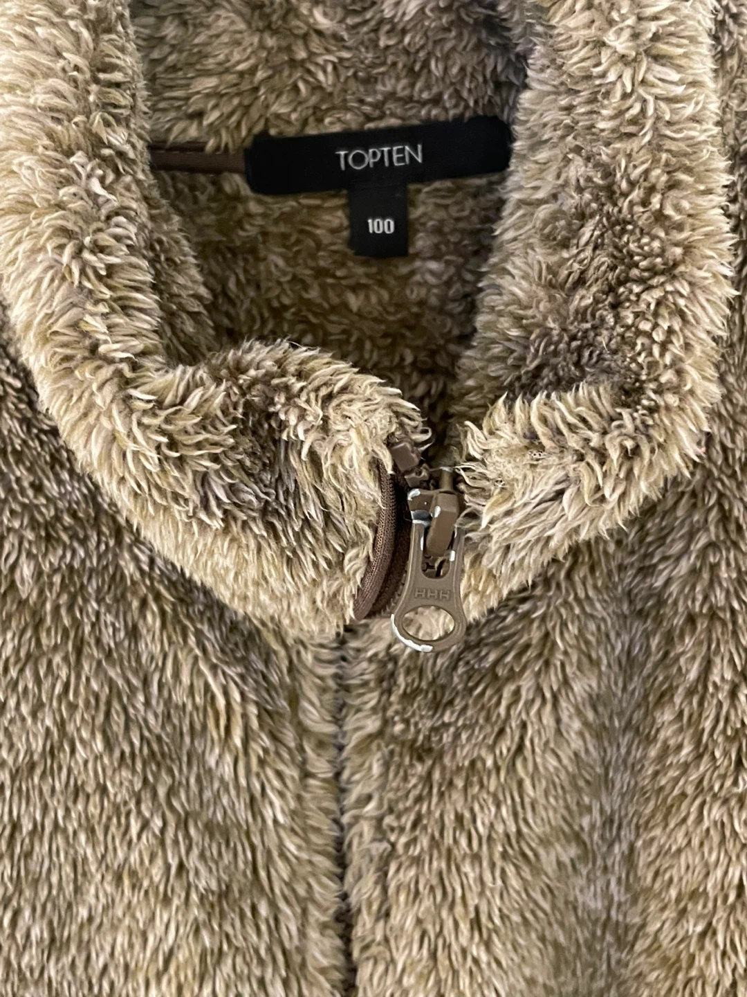 Brown fuzzy fleece vest from TOP TEN. Full zip front closure. It's a size 100. Perfect for layering on cooler days!