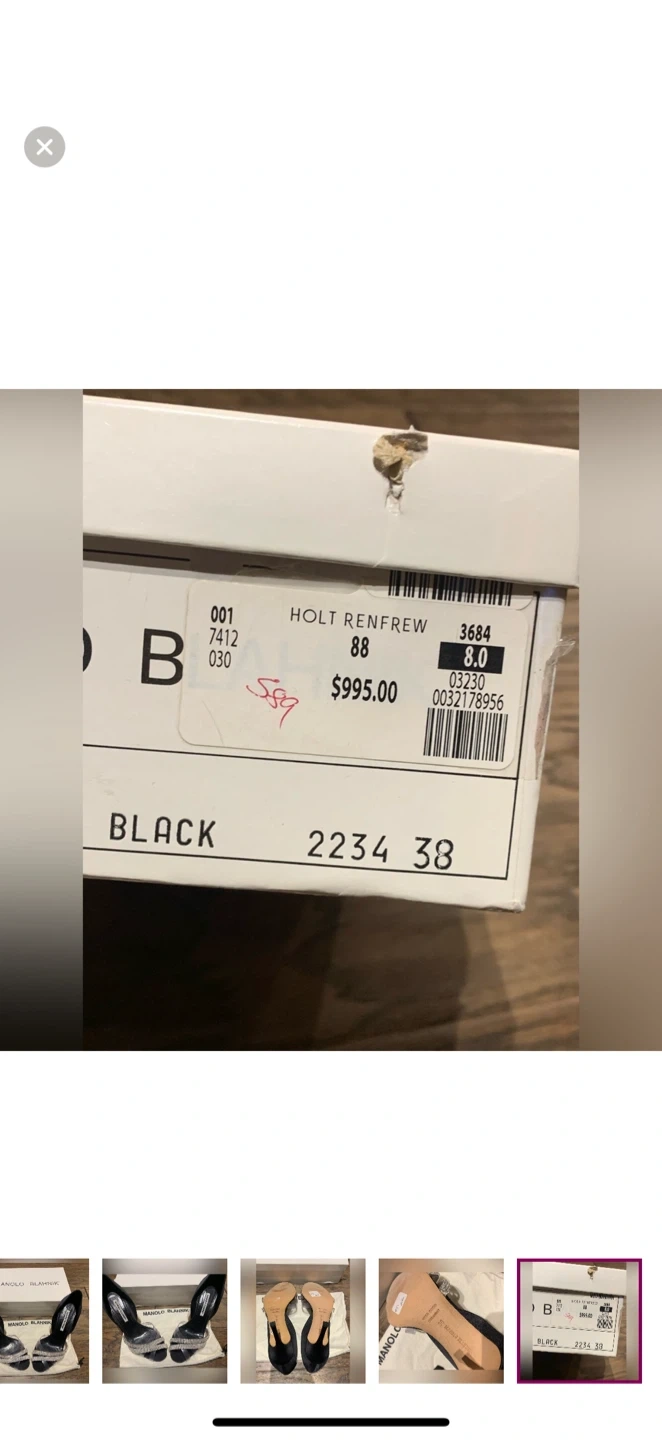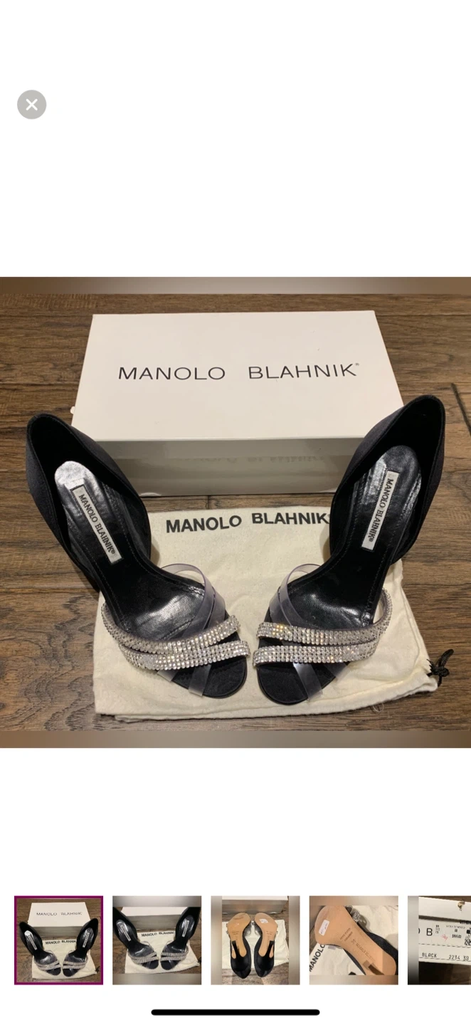 Selling a pair of Manolo Blahnik heels in black, size 38. They come with the original box and dust bag. The heels feature a beautiful crystal embellishment. Originally bought at Holt Renfrew for $995