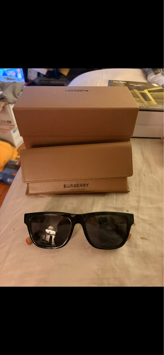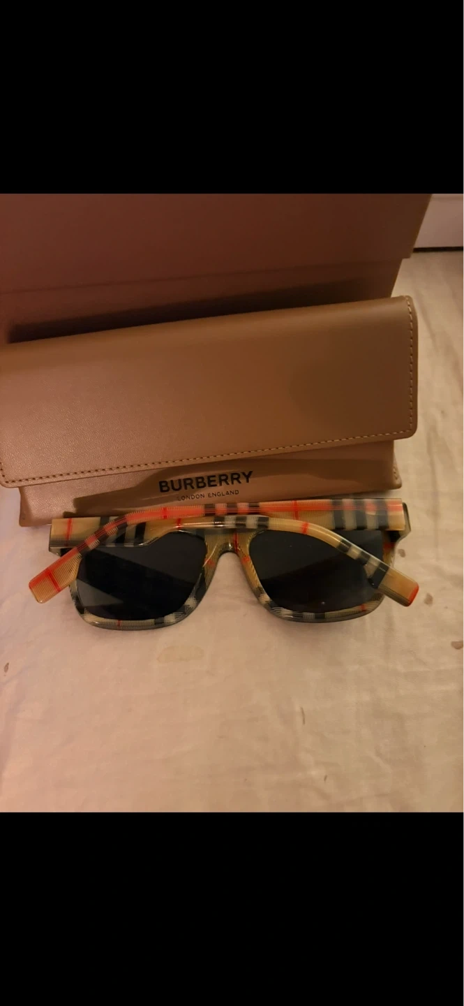 Authentic Burberry sunglasses featuring the signature check pattern. Includes a leather case and original box. These stylish shades offer great protection and a touch of luxury.zelle or cash . Wellington and Halsted here .