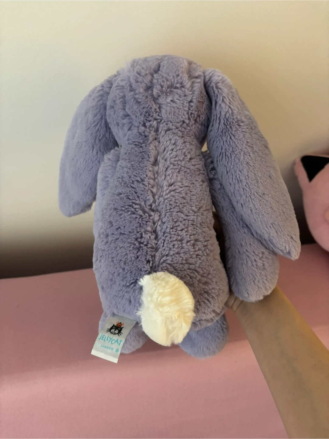 This is a Jellycat Bashful Bunny plush toy in a lovely lavender colour. It's made from super-soft fur and has those signature long, floppy ears. This cuddly bunny's perfect for snuggles and playtime!