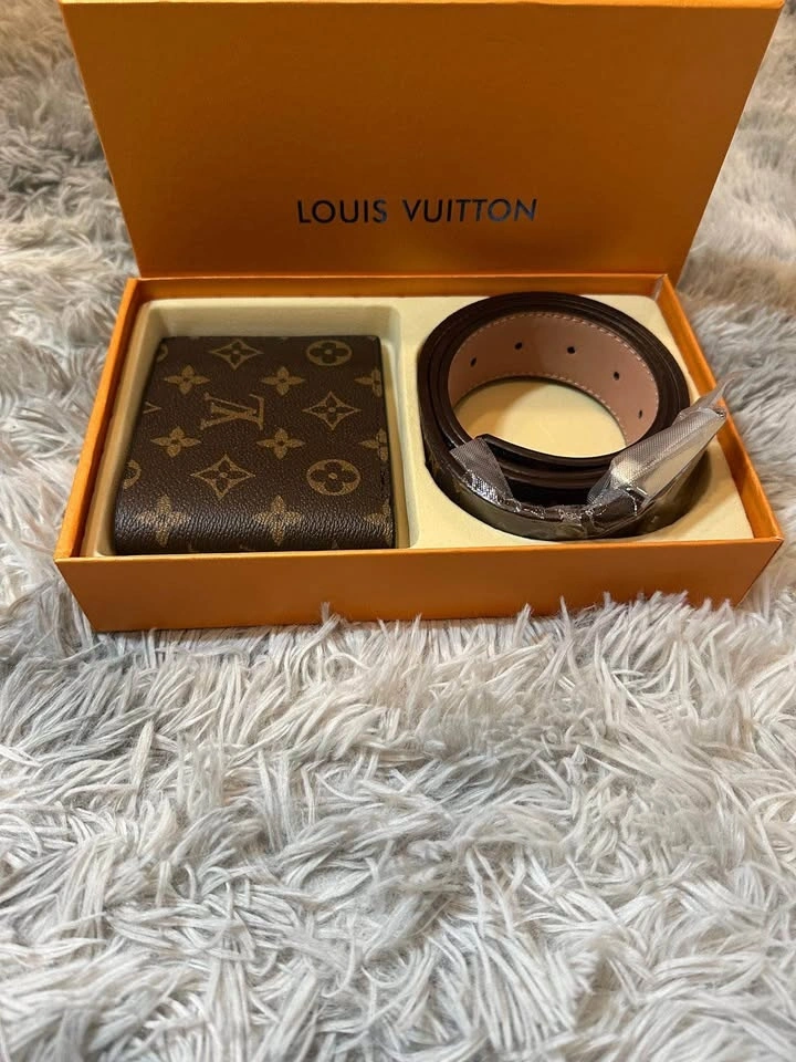Brand New LV Wallet and Belt Set. High Quality. Belt Size- 105cm. What’s Included? - LV Wallet, LV Belt, LV Bag, LV Box, LV Card of Authenticity.