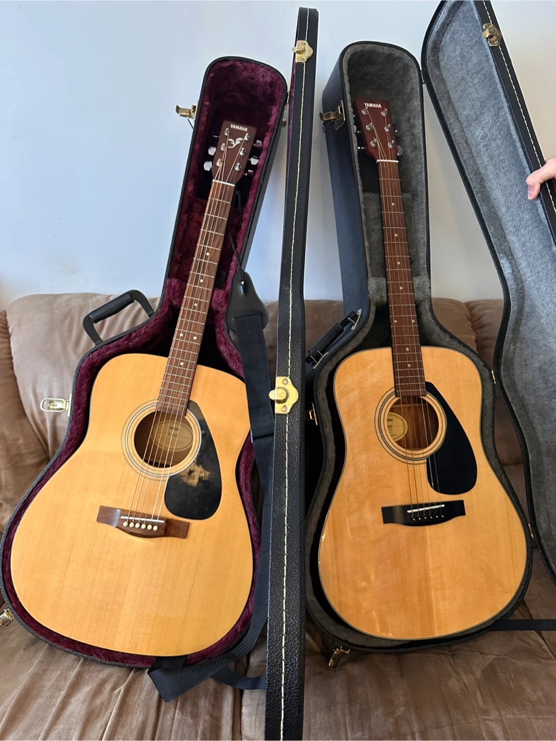 This is a Yamaha acoustic guitar. 400 for both guitar, It's a standard acoustic guitar with six strings. Includes a hard-shell case for protection. Great for learning or casual playing!
