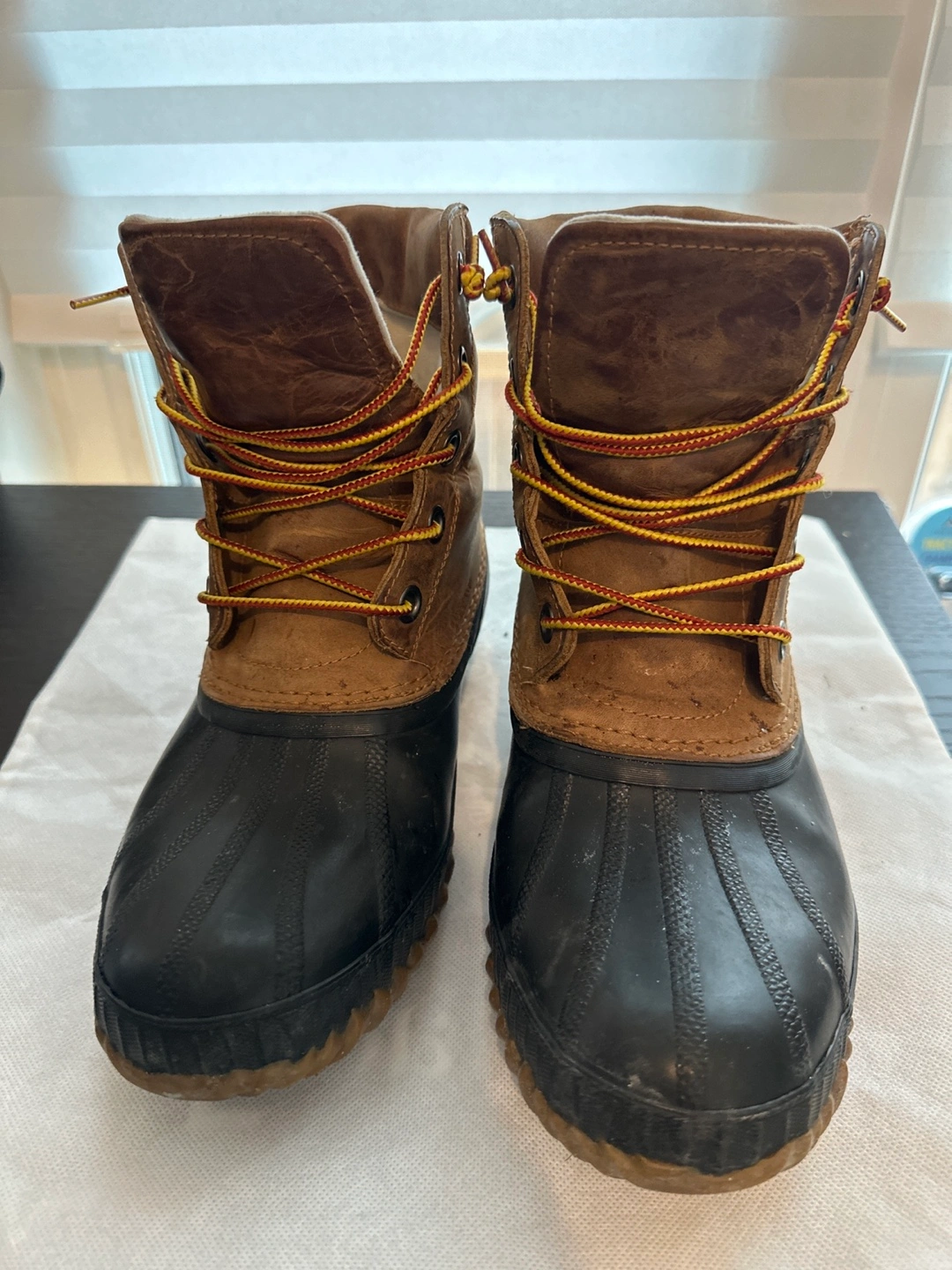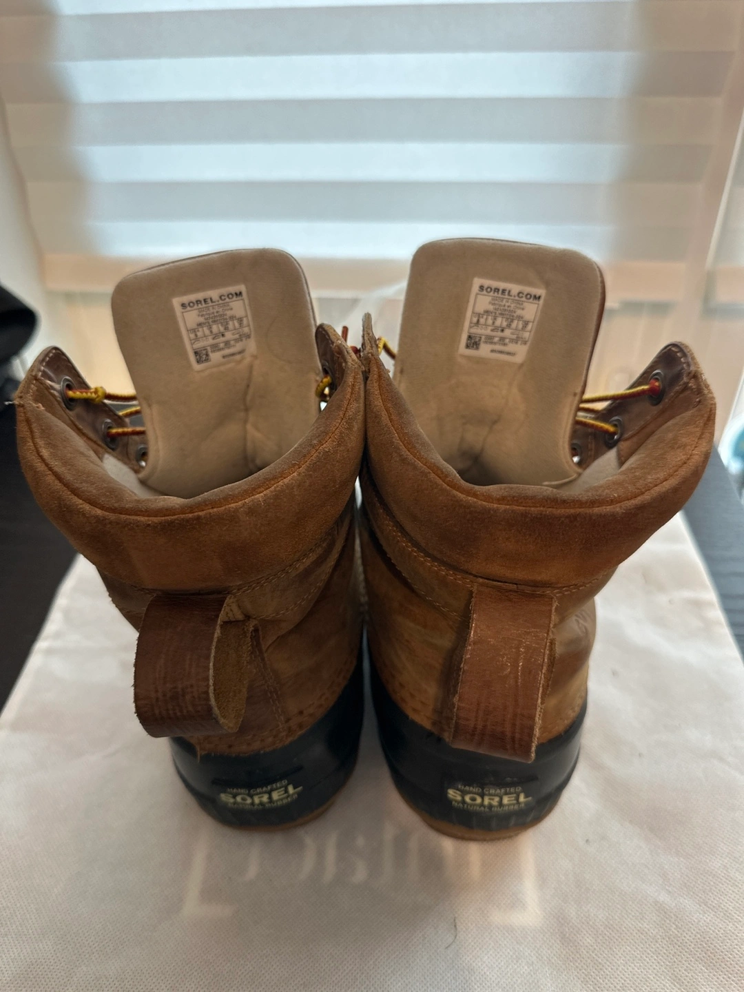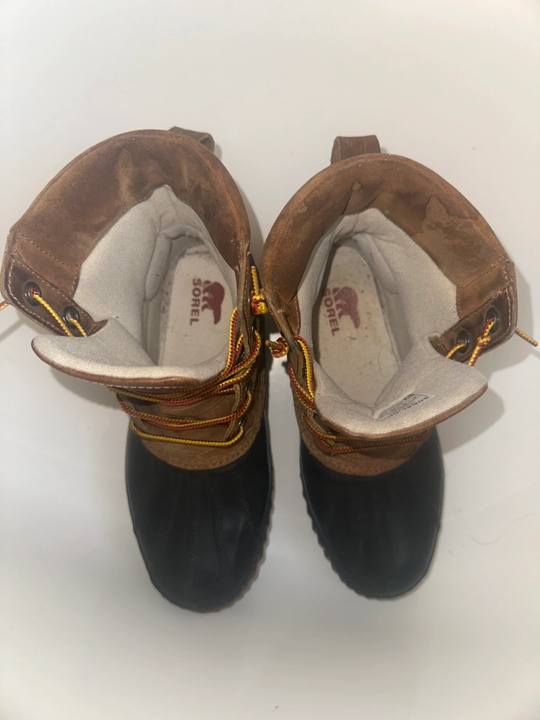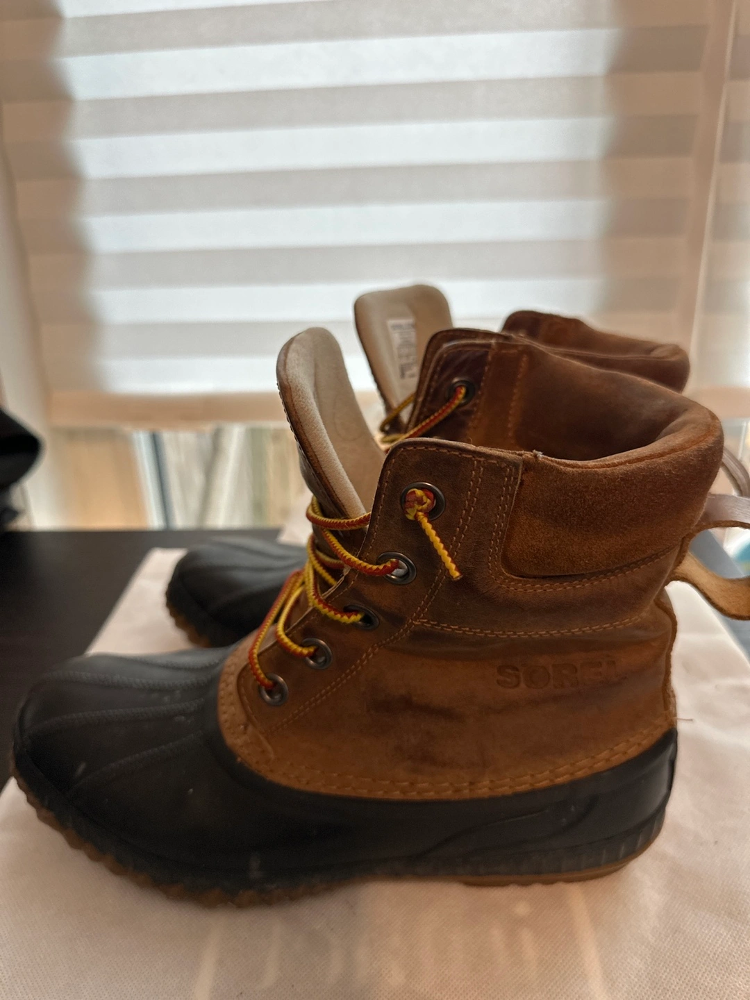 The stability and protection of the Sorel men's waterproof work boot in a go-anywhere design. The men's Cheyanne II boot is made of waterproof, supple, rich leather and features a handcrafted vulcanized rubber outsole. Add to that 200g of insulation, and you've got the ultimate style and comfort needed for winter. Brown leather and black rubber winter boots. Very good condition and warm .