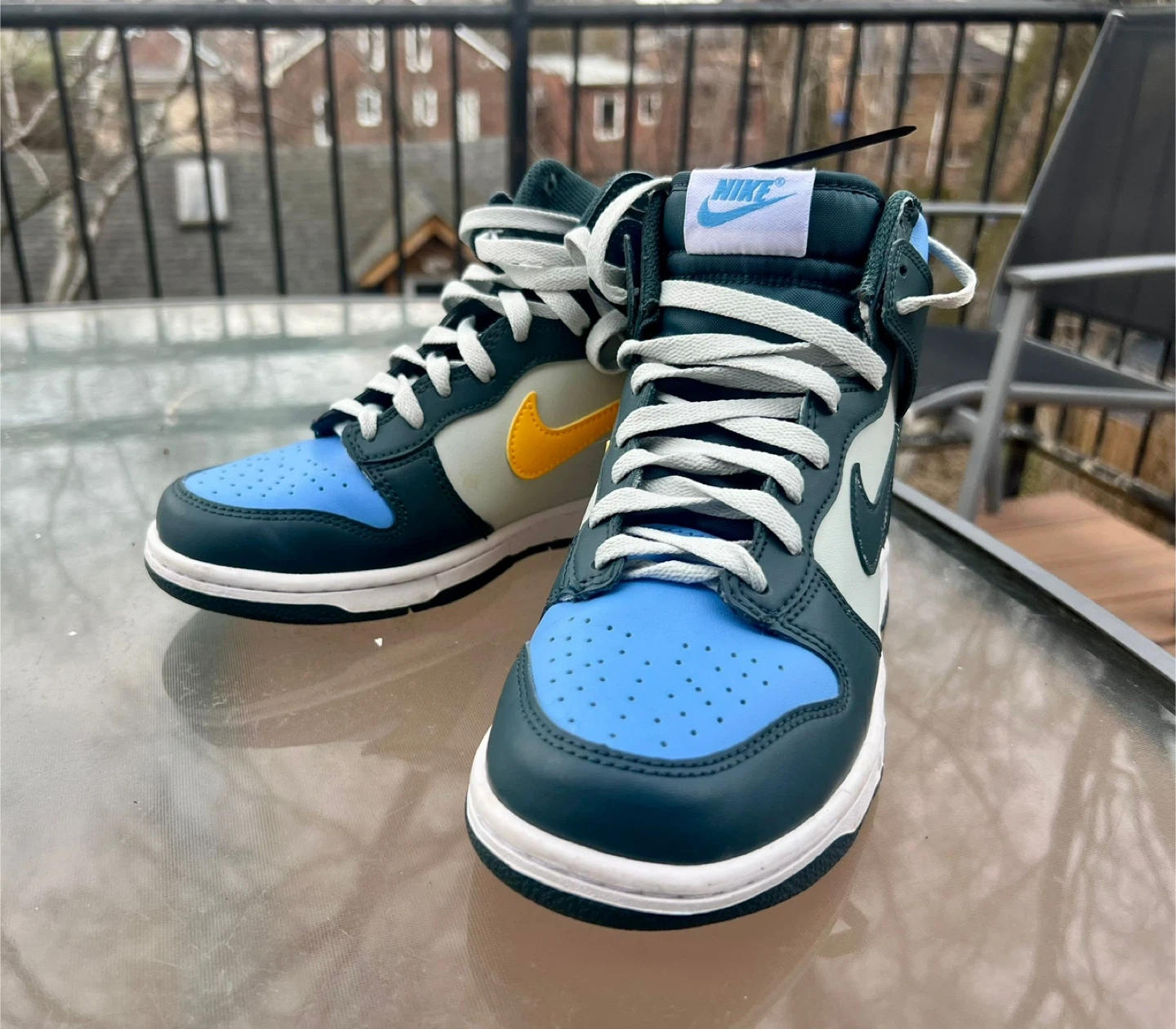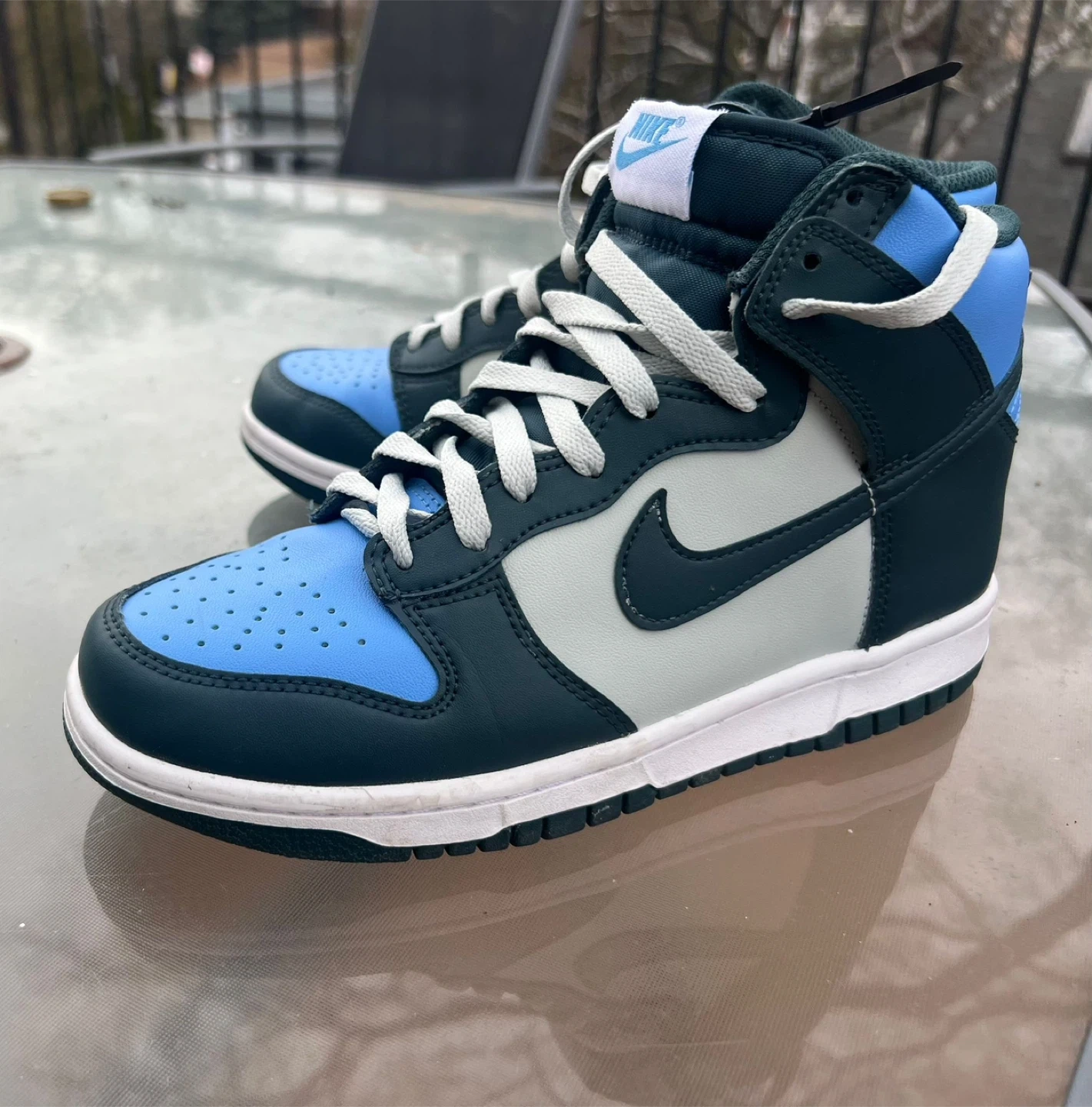 Buy & SellNike Dunk High "Blue & Grey" SneakersNike Dunk High "Blue & Grey" Sneakers$60These Nike Dunk High sneakers come in a stylish blue, grey, and deep green colourway. They feature a durable construction suitable for everyday wear.Size7YBrandNikeWHERE TO MEETWanda RdView MapSELLERverifiedDianaWest Bend1256 reviews0 chats·0 favorites·44 viewsSEND CHAT TO SELLERHi Diana! I’m interested in your listing.Hi Diana! I’m interested in your listing.Get the Karrot app to chatSign In to chat