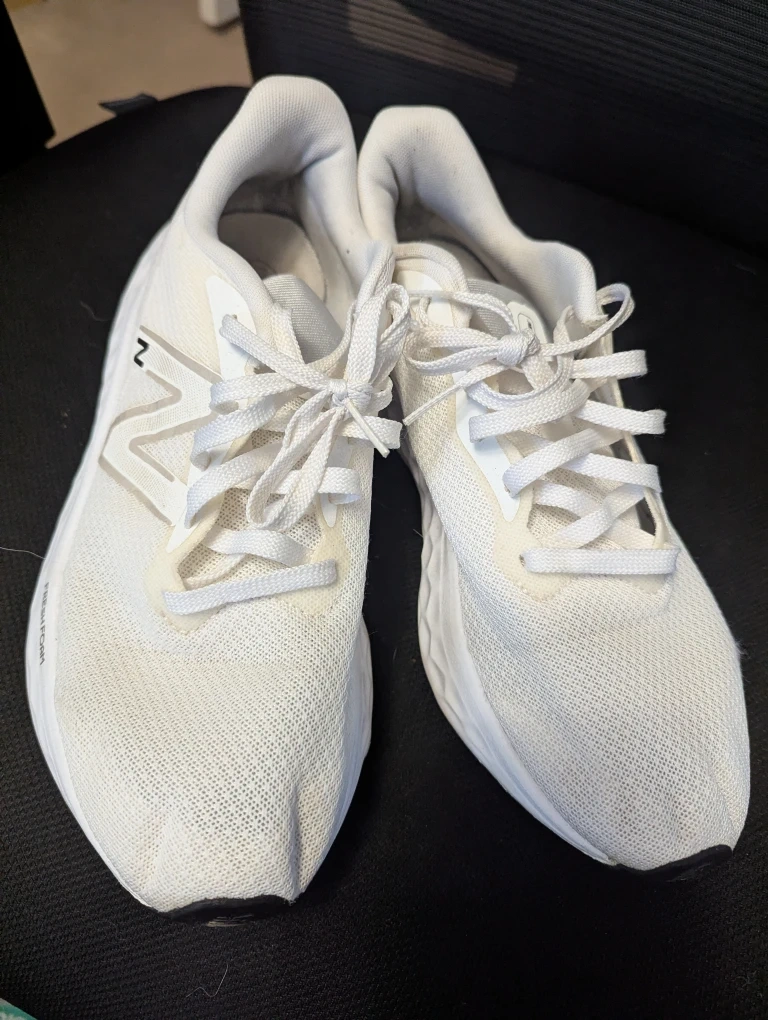 Selling a pair of New Balance Fresh Foam Arishi v4 men's running shoes in white. They feature Fresh Foam cushioning, making them lightweight and comfortable for running or everyday wear. Great for anyone looking for a stylish and supportive running shoe!