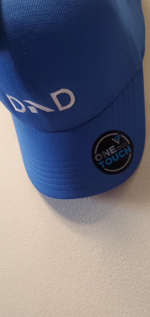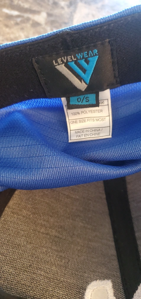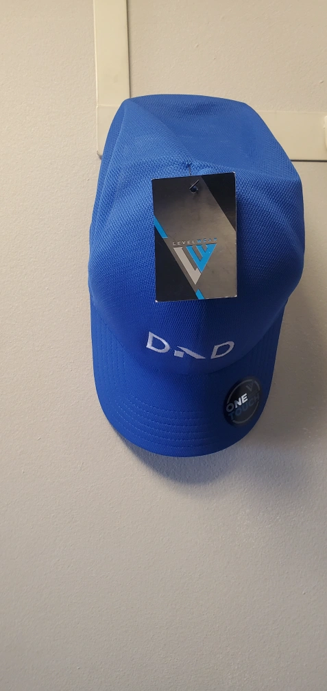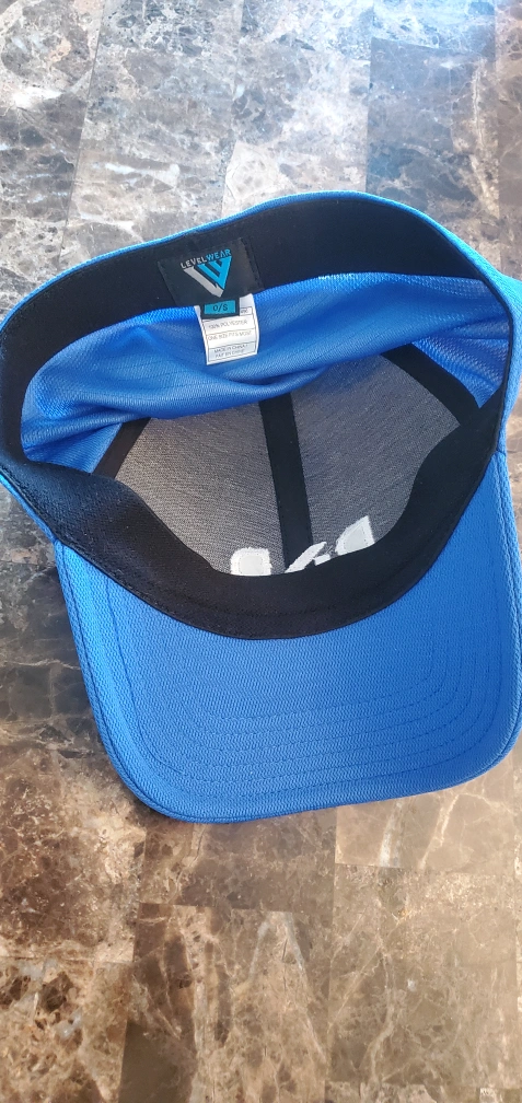 Blue hat with white DXD embroidery. Levelwear brand.