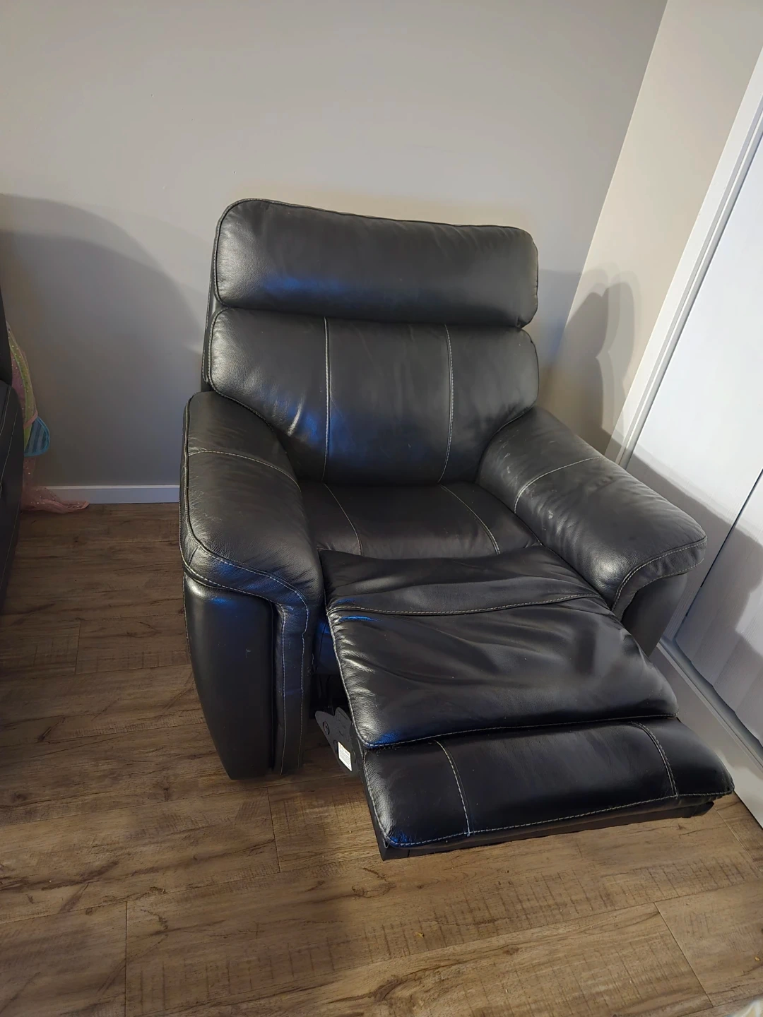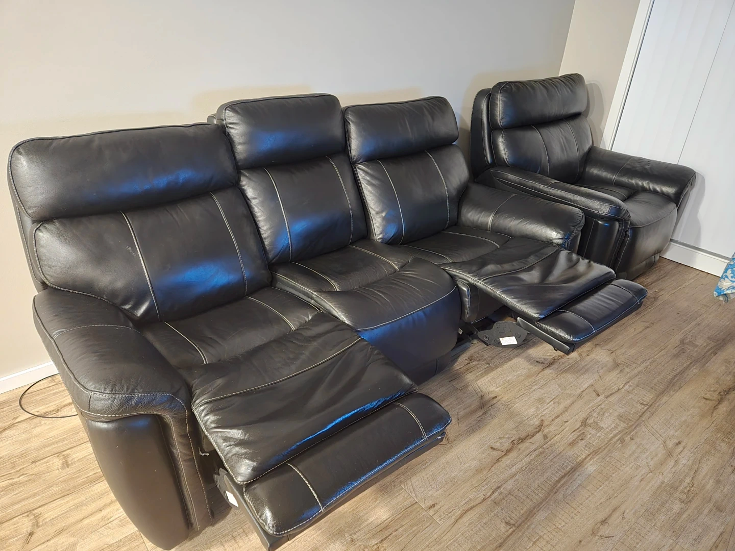 Stallion Leather Dual Power Reclining Sofa - Midnight Black Head & Foot adjustable