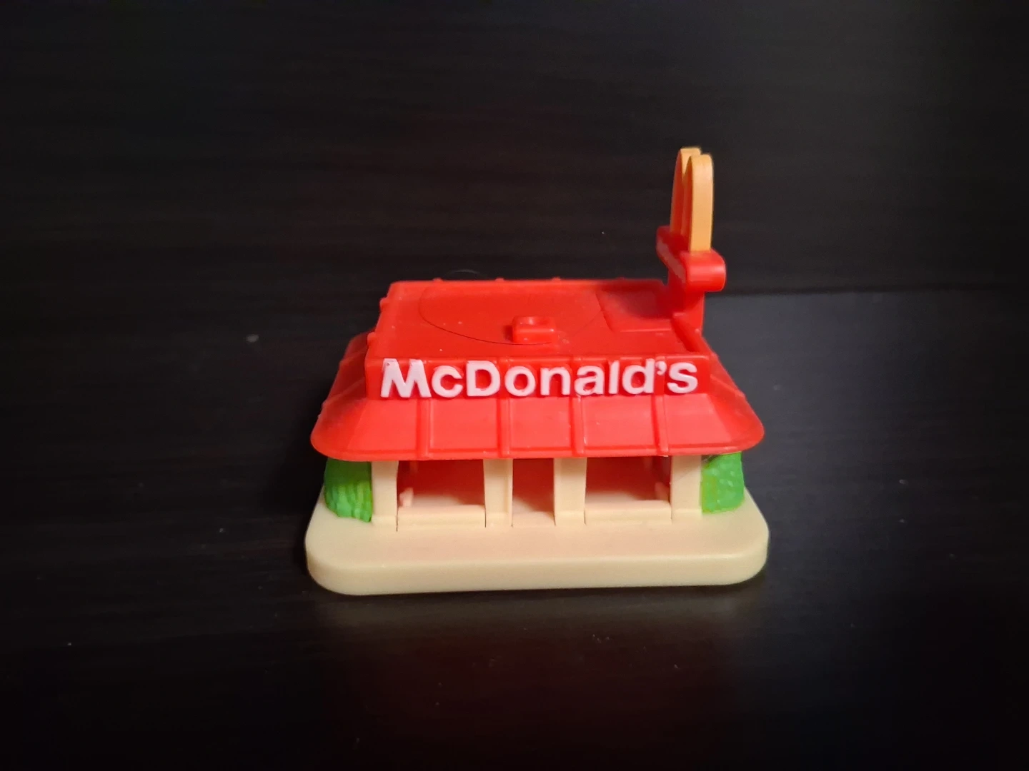 This is a McDonald's restaurant playset toy. It's made of plastic and features the iconic McDonald's logo. It's a fun item for collectors or for kids who enjoy imaginative play.