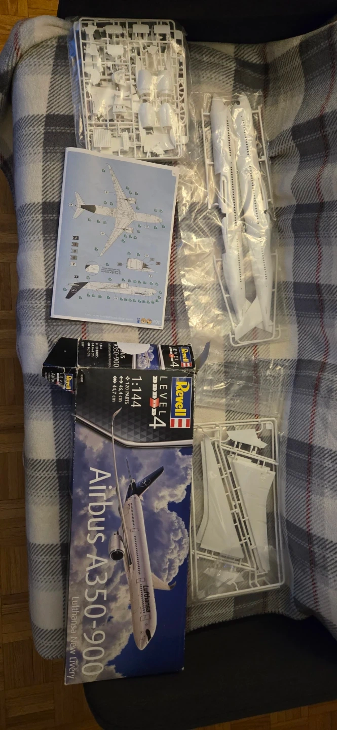 An Airbus A350 -900 Lufthansa New livery. All parts are included but no stickers. Box is damaged. Bought around 2023-2024. (CASH ONLY)