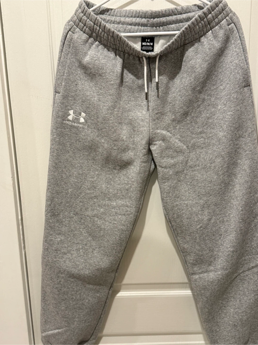 Selling a pair of Under Armour sweatpants in new ! They're a comfy grey colour and size medium. Perfect for lounging or working out!
