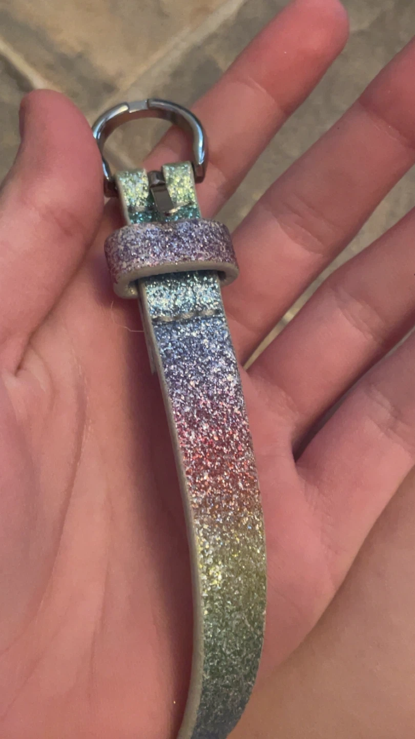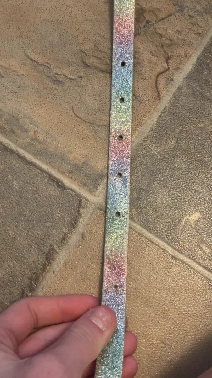 Two glittery belts to add a little sparkle to your day! One is a rainbow glitter and the other is pink glitter. Kids medium,pick up only😁