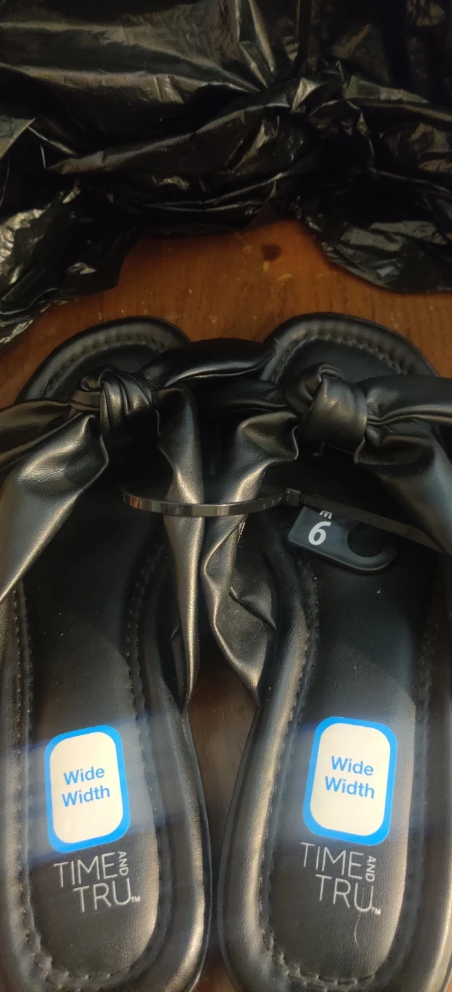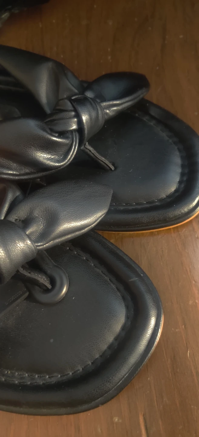 Comfortable black flip flop sandals with a bow detail. They're a size 9 W and feature a wide width for extra comfort. Faux leather material.Price is firm. Will only reserve for 7 days