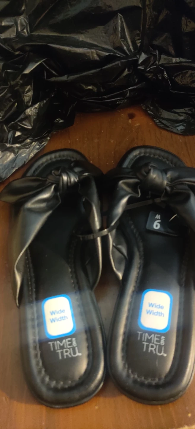 Time and Tru Black Wide Width Flip Flop Sandals Size 9