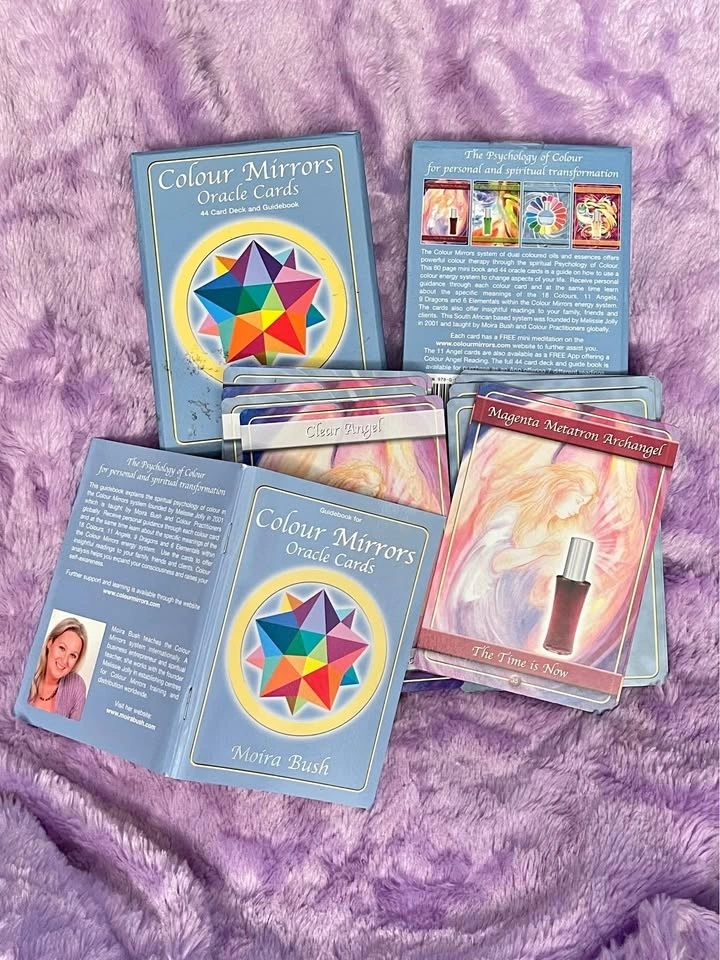 Colour Mirrors Oracle Cards by Moira Bush. Minimal usage, crisp condition. Nice for colour & intuitive work. Let me know if you're interested!