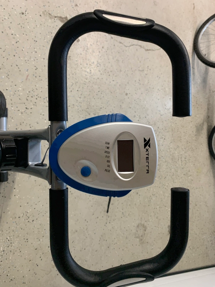 Used Xterra folding exercise bike with digital display. Includes handlebars. Comes with adjustable seat and tension control.