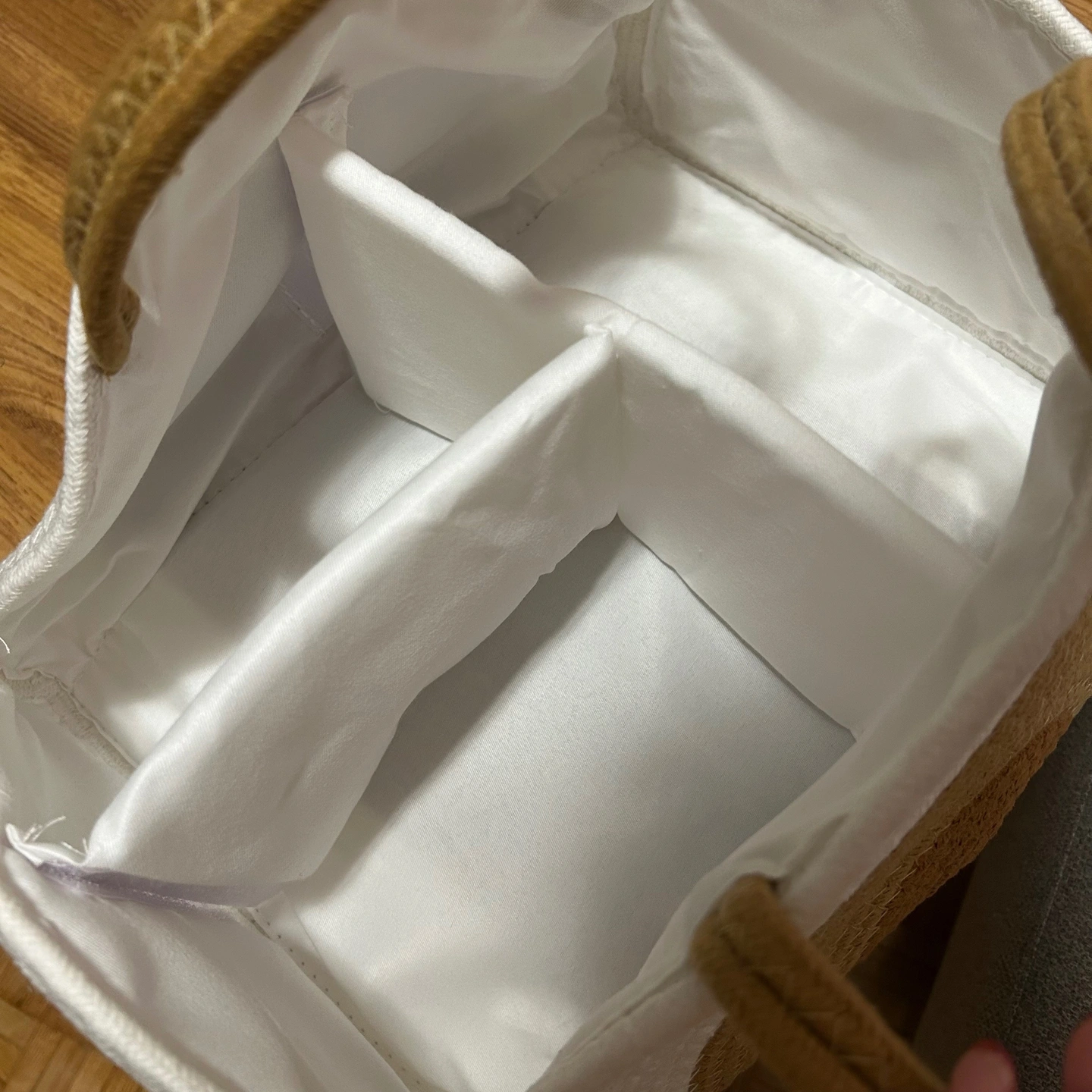 Has removable dividers inside, dividing the bag into 3 different compartments