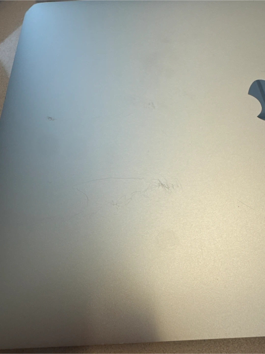 I have used this laptop since around January 2021. I have apple care on it and get it serviced regularly. I have never opened it myself and all parts are apple genuine. Everything works 100%. There are scratches on the top and back of the laptop. I have had a case on it since I got it, so a rock or something sharp must have gotten in there. A case completely covers up the scratches though from my experience. For any questions or concerns please contact me.