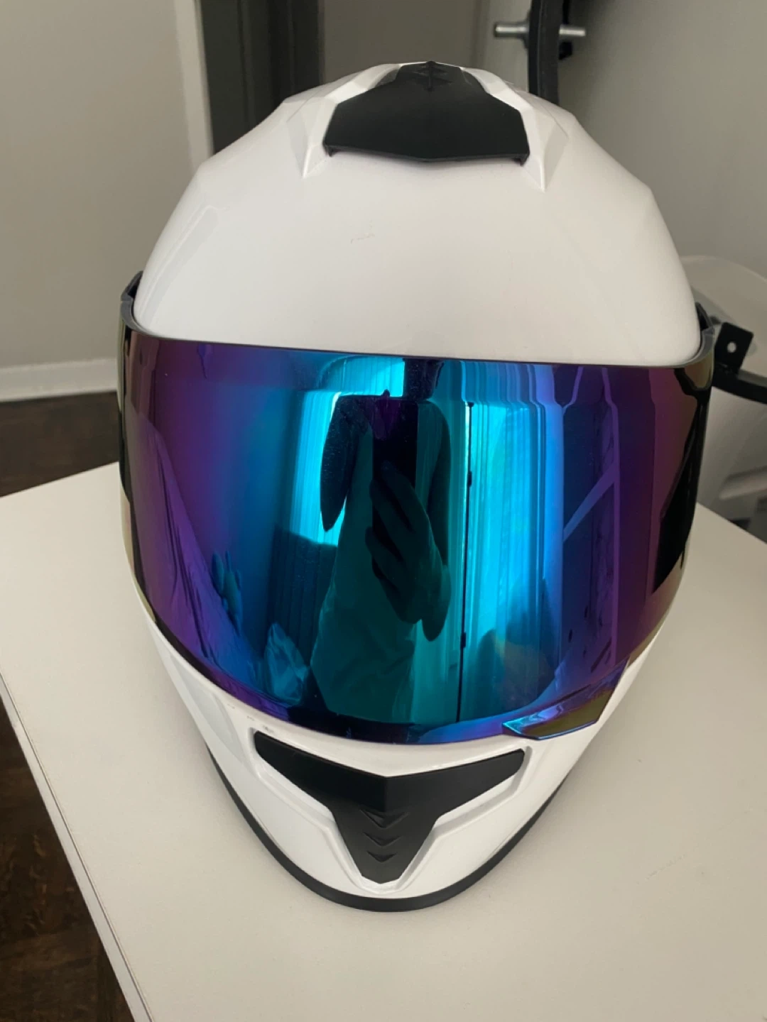 White Full Face Motorcycle Helmet with Mirrored Visor