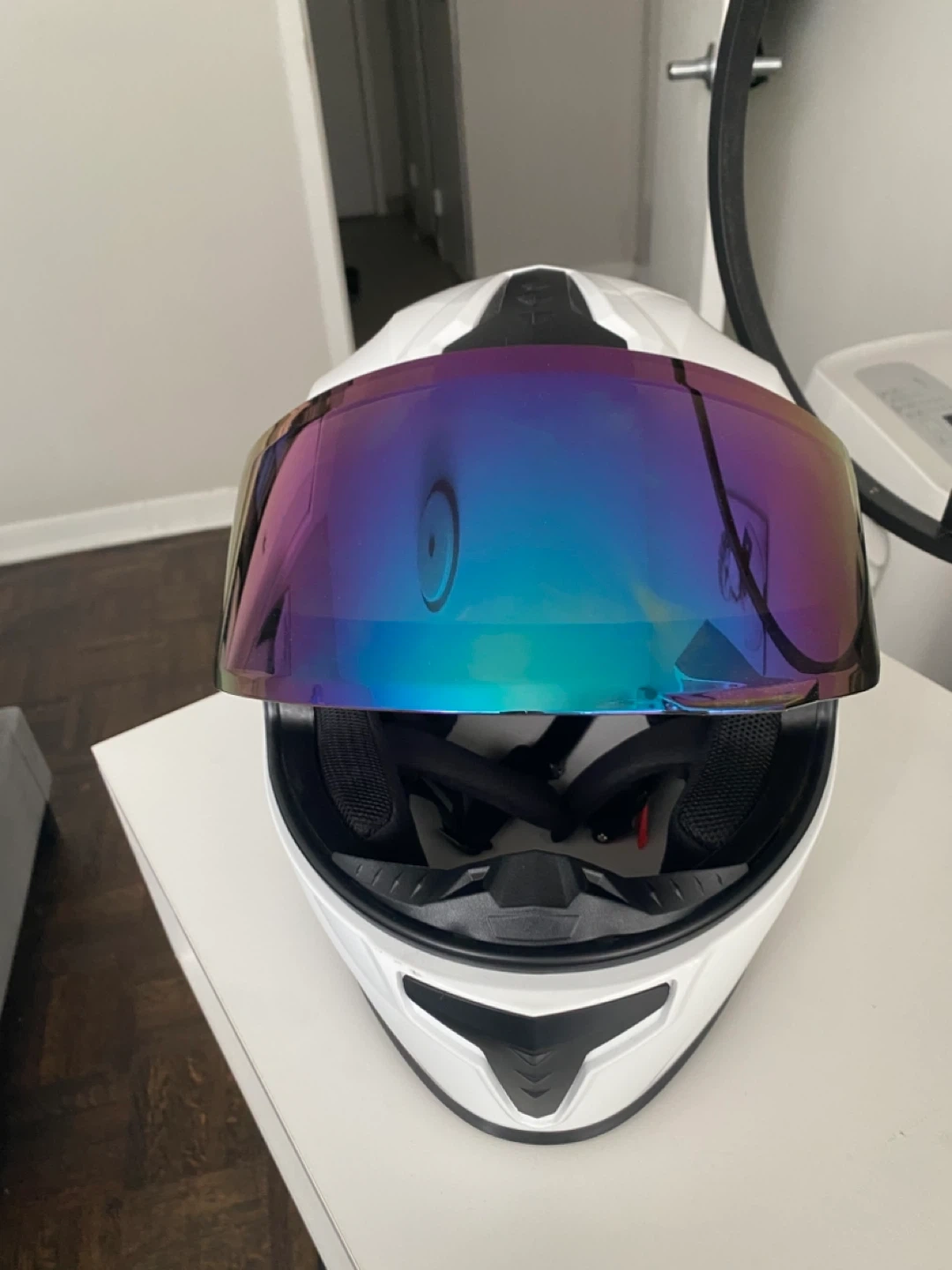 Selling a full-face motorcycle helmet in excellent condition. It was only worn once for a video commercial shoot, so it’s basically brand new.