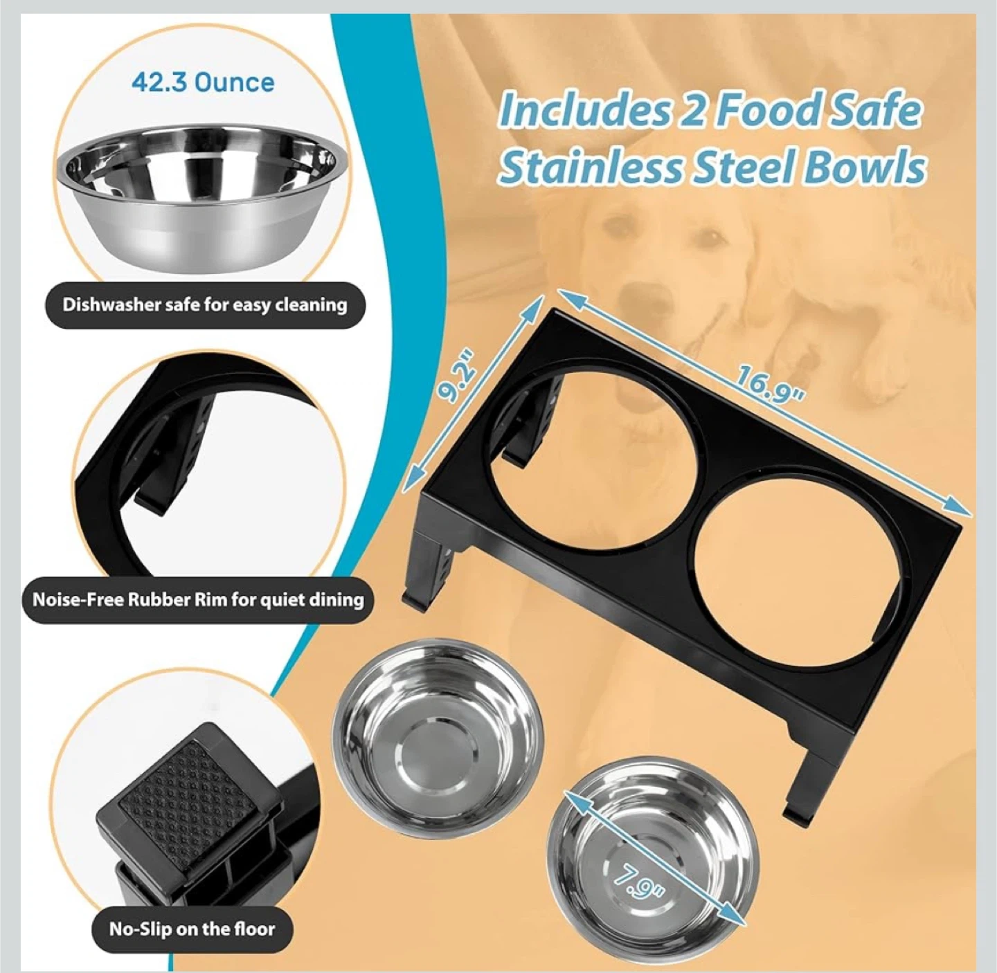 Niubya Elevated Dog Bowls with 2 Stainless Steel Bowls