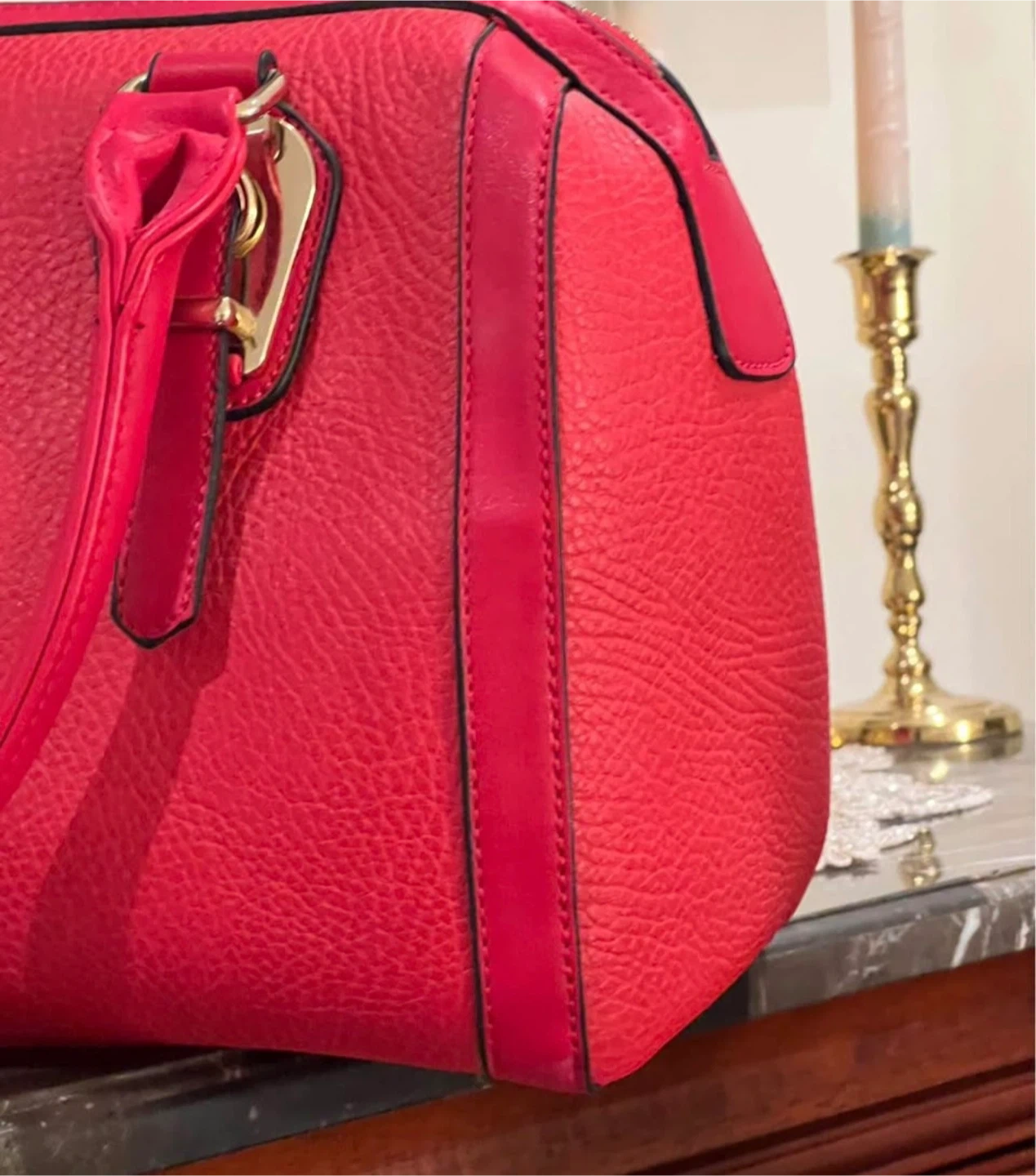 Red Textured Satchel Handbag