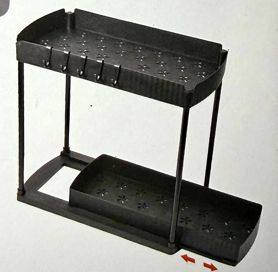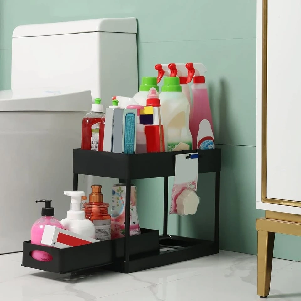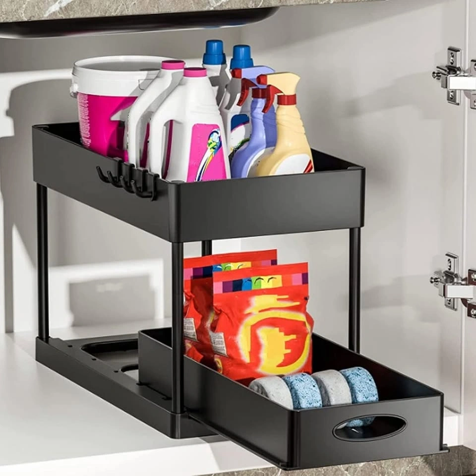 New. Large capacity 2 tier pull out under cabinet organizer, slide out storage shelf for home, kitchen, bathroom, countertop, pantry, office cabinet. Estimated MSRP: $29.