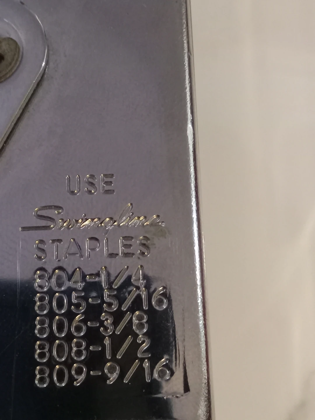 This is a metal Swingline staple gun. It's designed for use with Swingline staples. Various staple sizes are compatible, including 804, 805, 806, 808, and 809 series.
