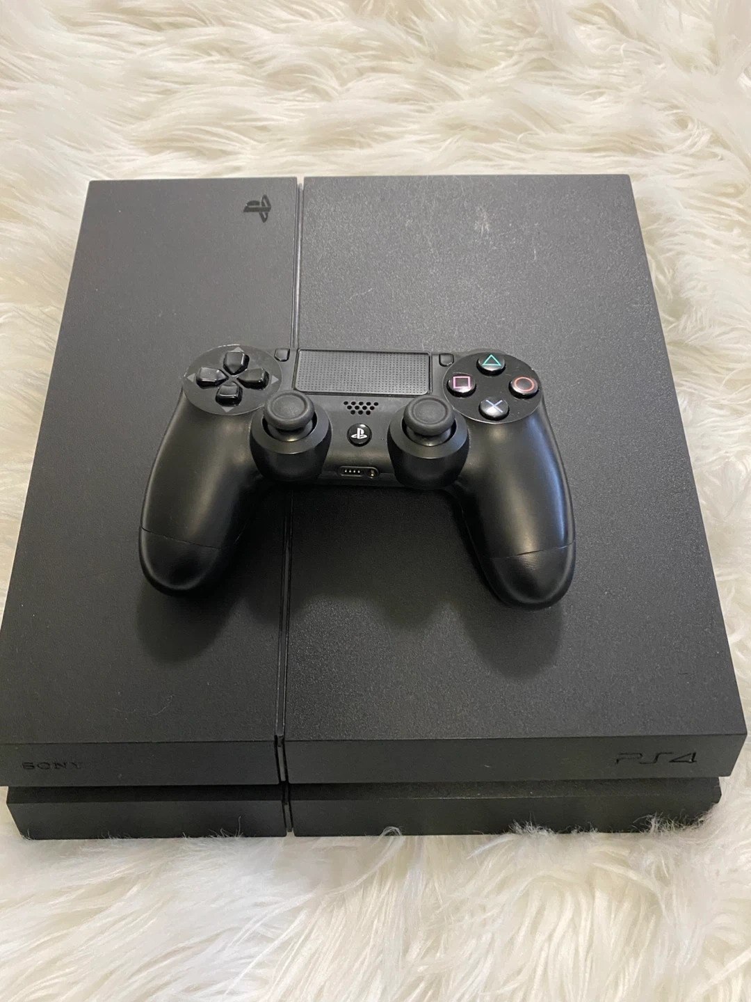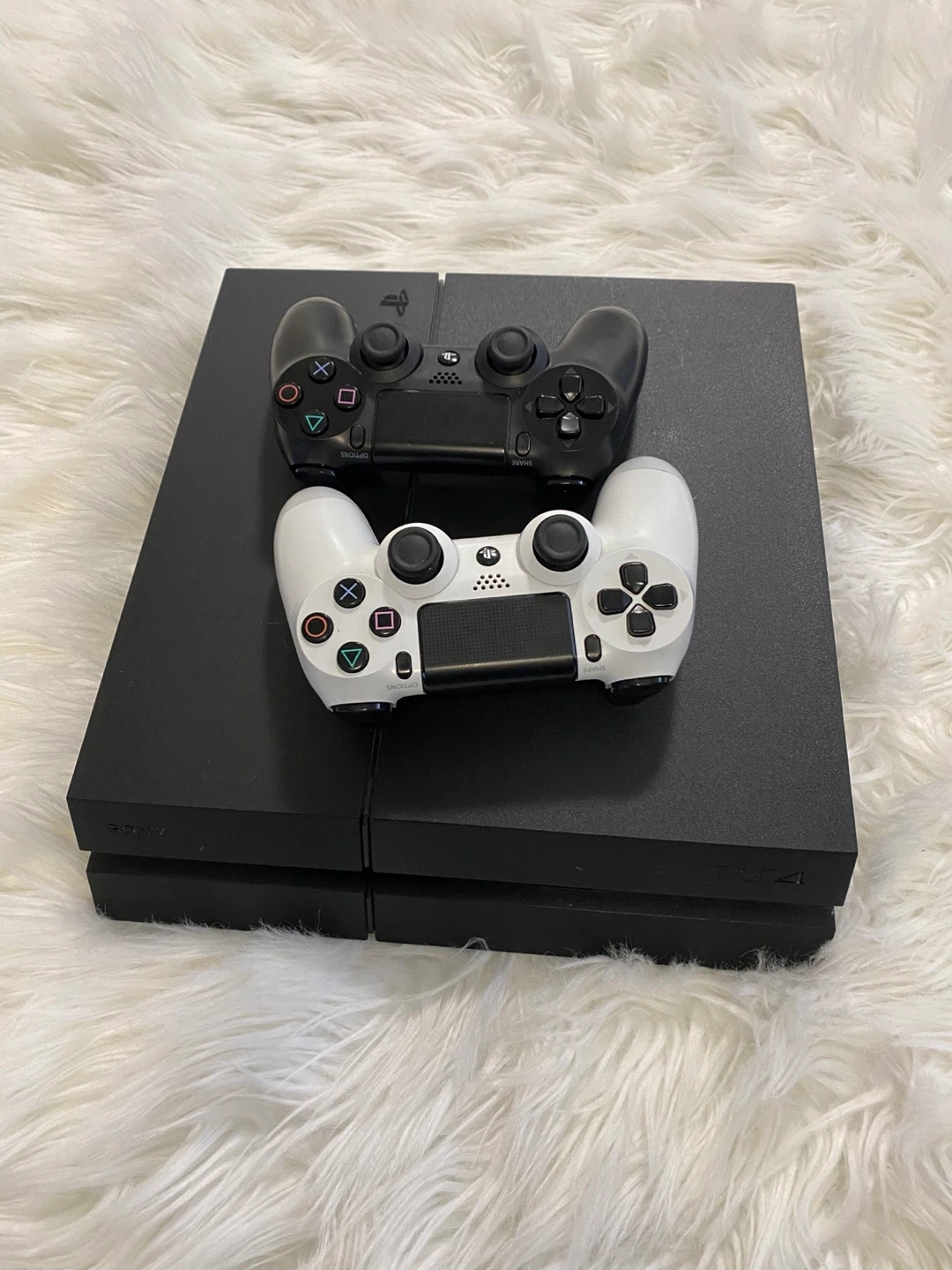 Selling a black Sony PlayStation 4 console. It comes with two DualShock 4 controllers: one black and one white. Great for gaming with a friend!