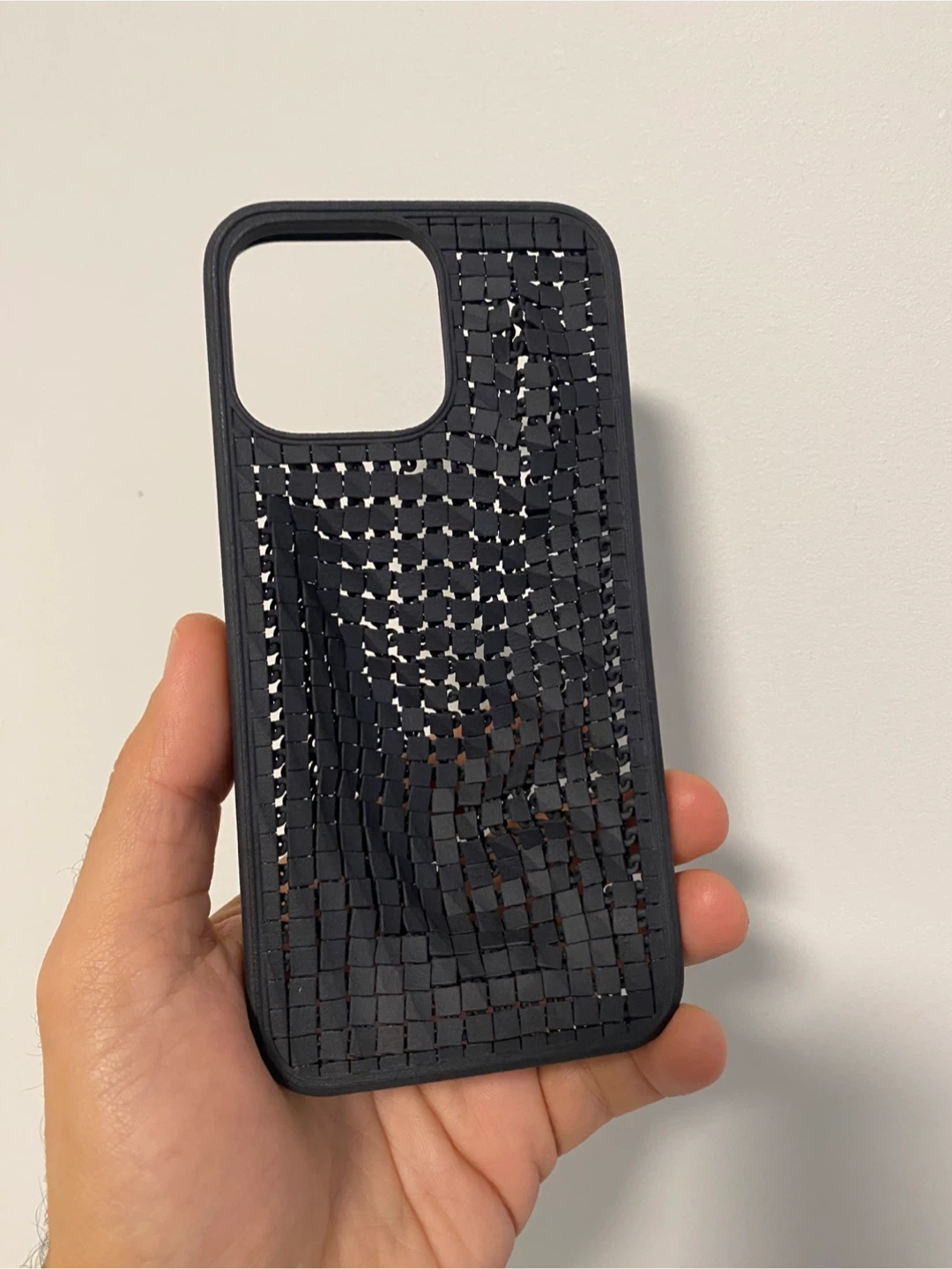 3D Printed limited edition phone case with a unique textured design. It's made from a durable material, offering protection for your device. Luxury phone case!