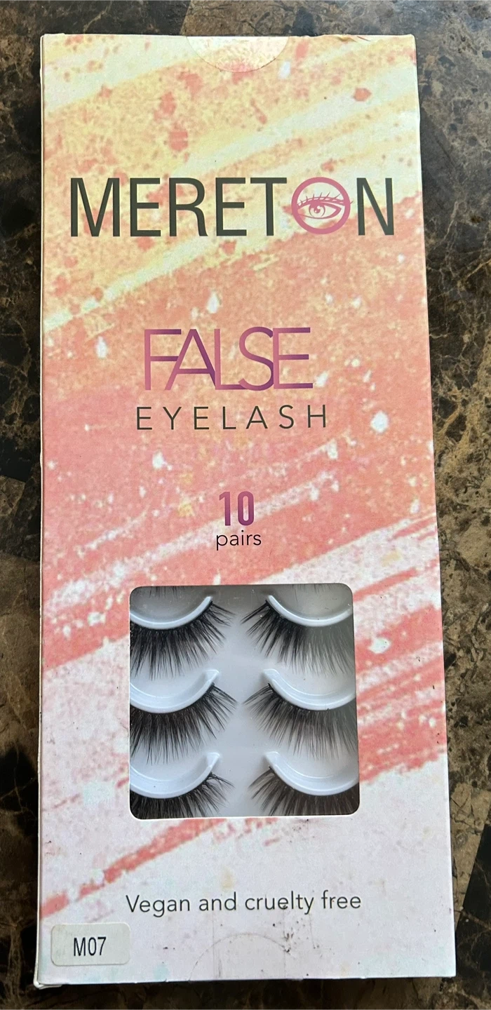 MERETON false eyelashes, model M07. This pack includes 10 pairs of lashes. They're vegan and cruelty-free. Great for achieving a fuller look!